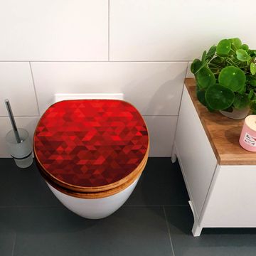 Design WC-Sitz Bambus Holz Motiv Dreiecke Rot