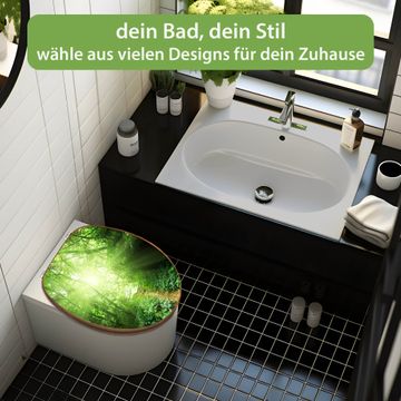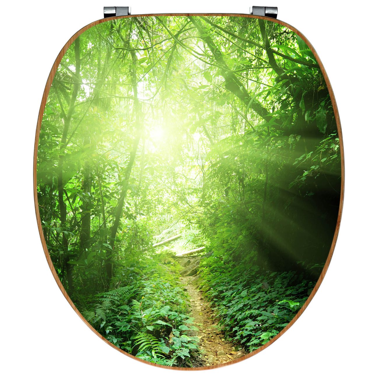Mit dem banjado Toilettensitz in Bambus verbinden Sie Design und Funktionalität. Sie erhalten den WC-Sitz mit bewährt schwerer Holz Qualität und Universal Scharnieren. Das Motiv Motiv Dschungel Malaysia besteht aus einer schutzlaminierten Motivfolie, die durch das Schutzlaminat zusätzlich vor Kratzern schützt. Durch diesen Motivdruck wird der WC-Sitz zu einem Blickfang in Ihrem Bad.