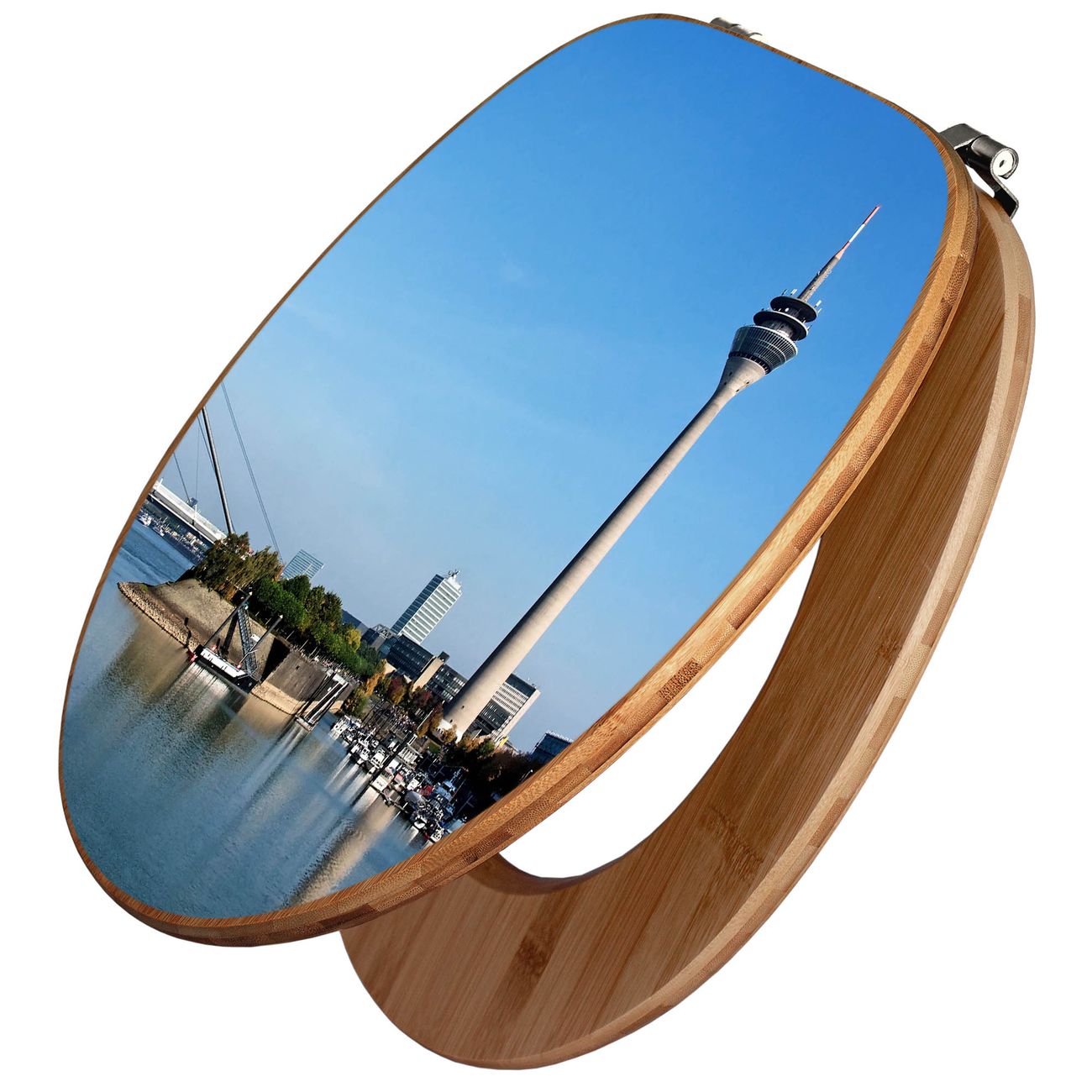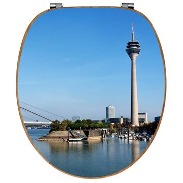 Mit dem banjado Toilettensitz in Bambus verbinden Sie Design und Funktionalität. Sie erhalten den WC-Sitz mit bewährt schwerer Holz Qualität und Universal Scharnieren. Das Motiv Motiv Düsseldorf besteht aus einer schutzlaminierten Motivfolie, die durch das Schutzlaminat zusätzlich vor Kratzern schützt. Durch diesen Motivdruck wird der WC-Sitz zu einem Blickfang in Ihrem Bad.