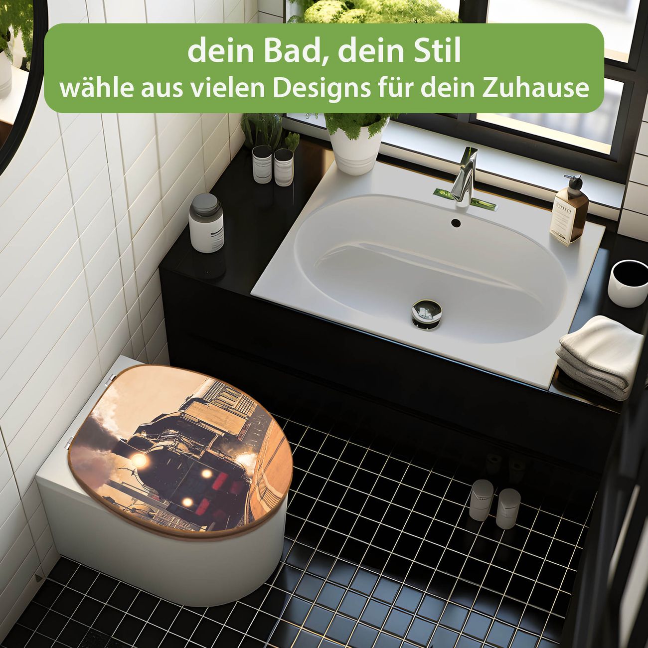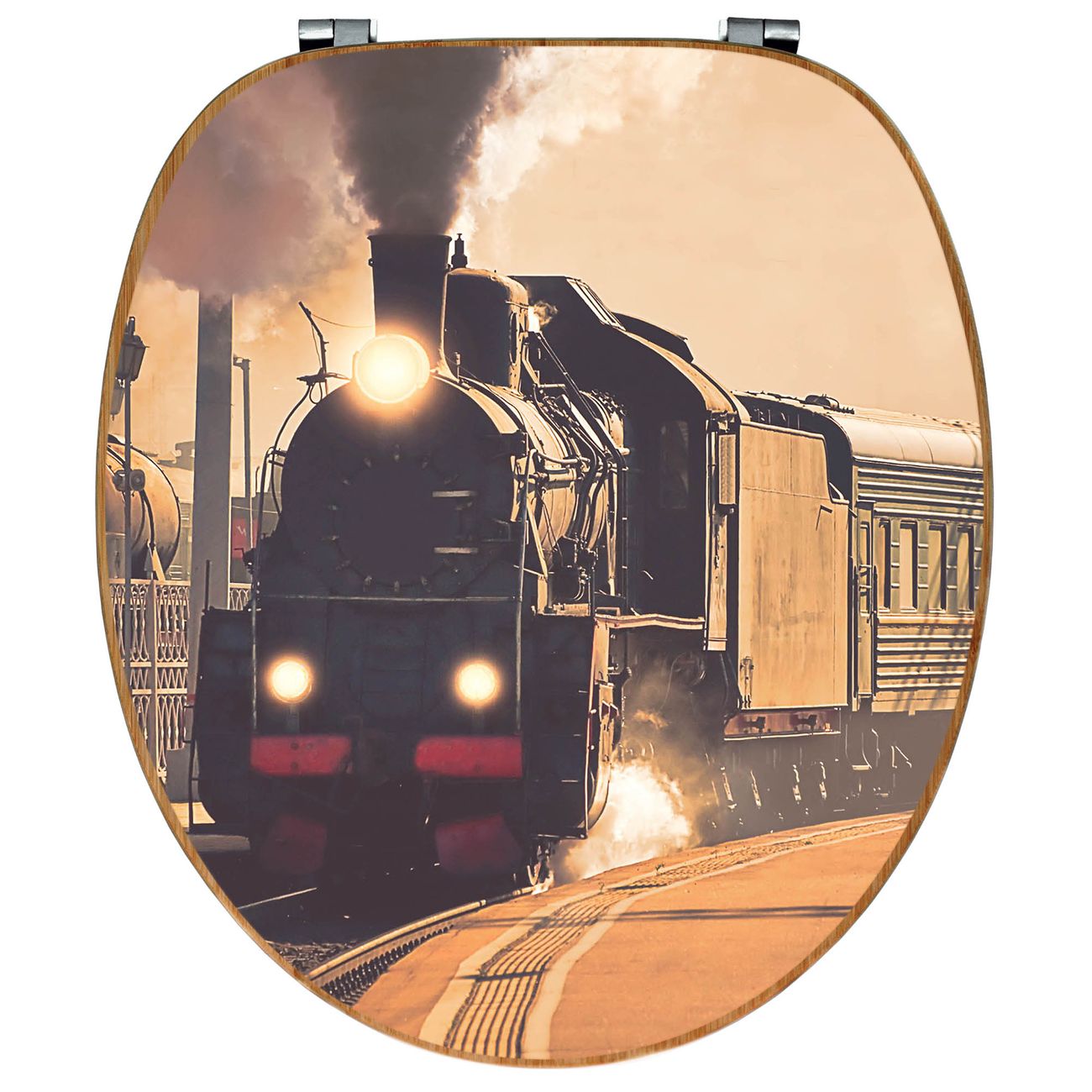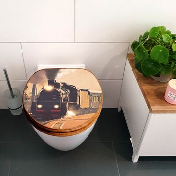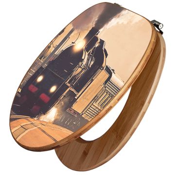 Design WC-Sitz Bambus Holz Motiv Einfahrender Zug