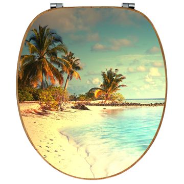 Mit dem banjado Toilettensitz in Bambus verbinden Sie Design und Funktionalität. Sie erhalten den WC-Sitz mit bewährt schwerer Holz Qualität und Universal Scharnieren. Das Motiv Motiv Einsame Insel besteht aus einer schutzlaminierten Motivfolie, die durch das Schutzlaminat zusätzlich vor Kratzern schützt. Durch diesen Motivdruck wird der WC-Sitz zu einem Blickfang in Ihrem Bad.