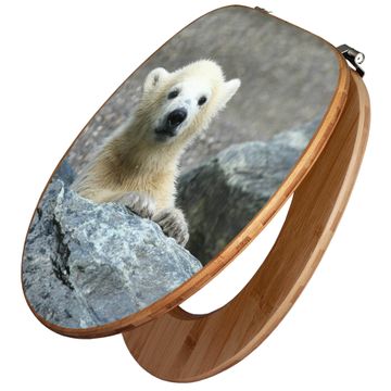 Design WC-Sitz Bambus Holz Motiv Eisbär Baby