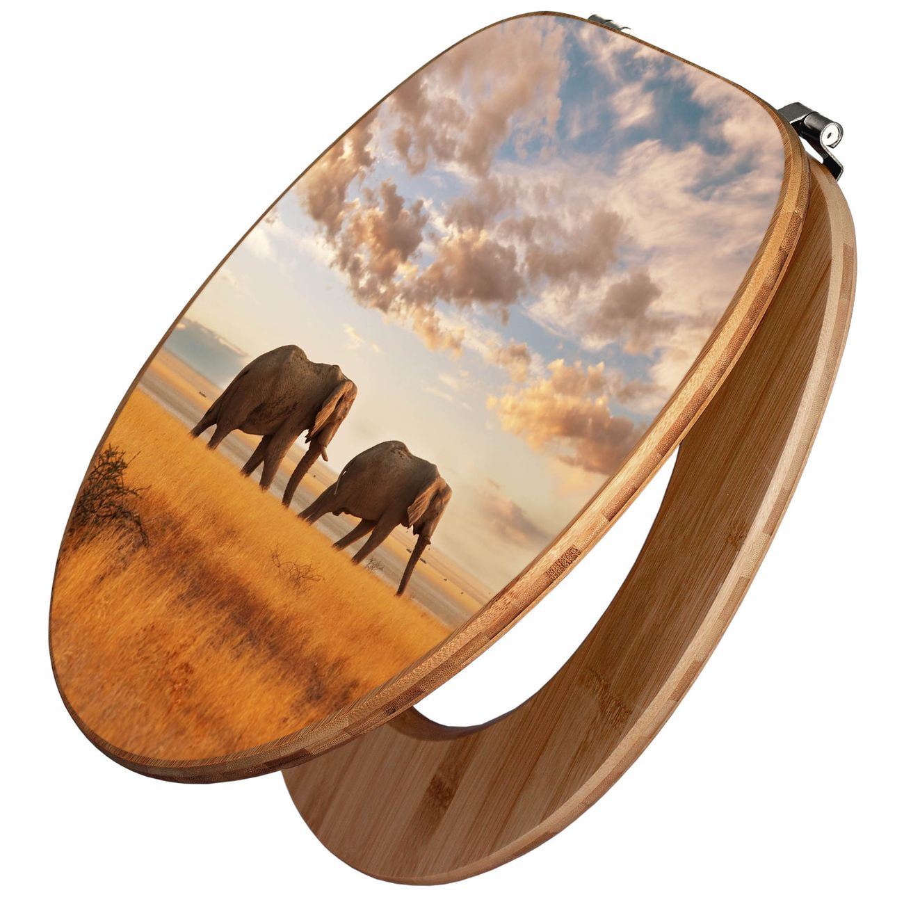 Design WC-Sitz Bambus Holz Motiv Elefanten