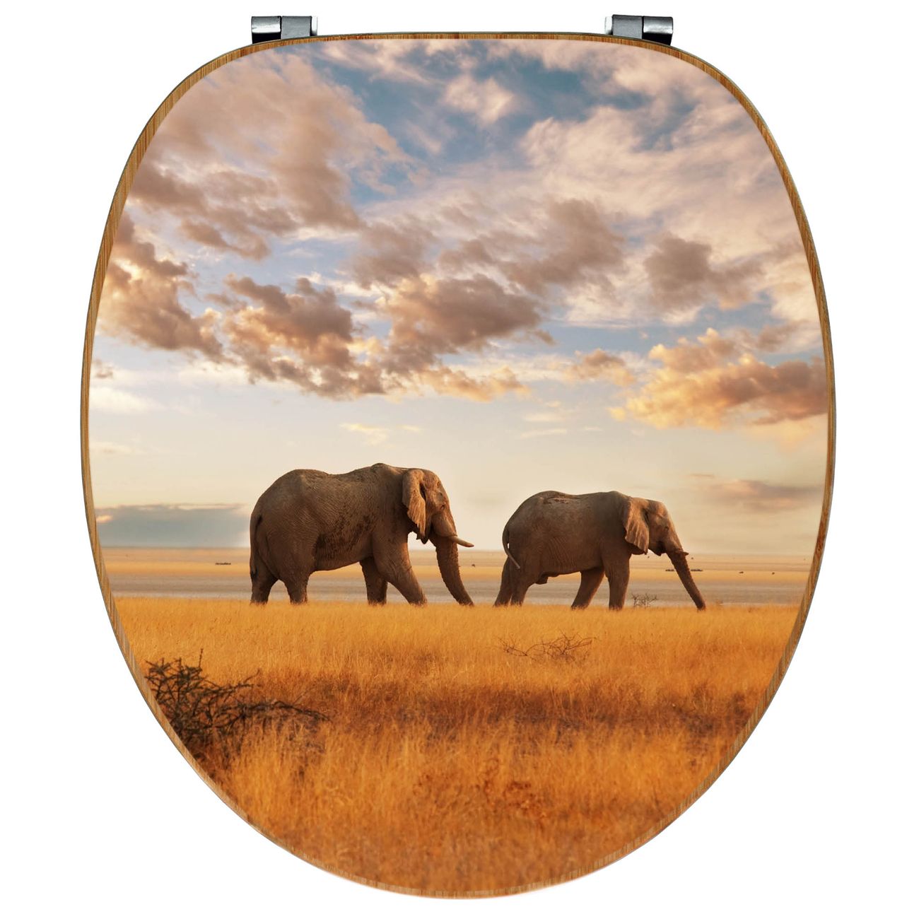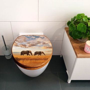 Mit dem banjado Toilettensitz in Bambus verbinden Sie Design und Funktionalität. Sie erhalten den WC-Sitz mit bewährt schwerer Holz Qualität und Universal Scharnieren. Das Motiv Motiv Elefanten besteht aus einer schutzlaminierten Motivfolie, die durch das Schutzlaminat zusätzlich vor Kratzern schützt. Durch diesen Motivdruck wird der WC-Sitz zu einem Blickfang in Ihrem Bad.
