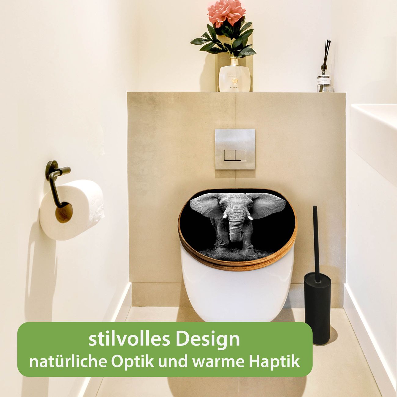 Mit dem banjado Toilettensitz in Bambus verbinden Sie Design und Funktionalität. Sie erhalten den WC-Sitz mit bewährt schwerer Holz Qualität und Universal Scharnieren. Das Motiv Motiv Ella besteht aus einer schutzlaminierten Motivfolie, die durch das Schutzlaminat zusätzlich vor Kratzern schützt. Durch diesen Motivdruck wird der WC-Sitz zu einem Blickfang in Ihrem Bad.