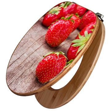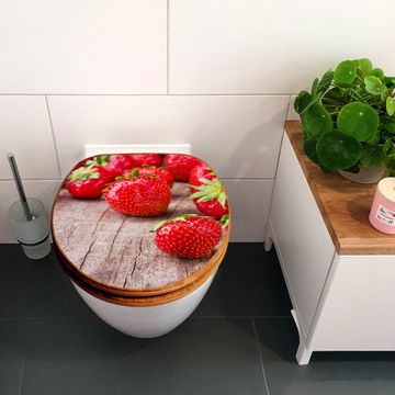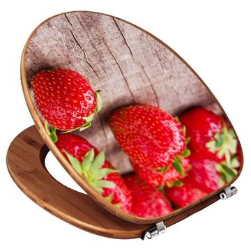 Design WC-Sitz Bambus Holz Motiv Erdbeeren