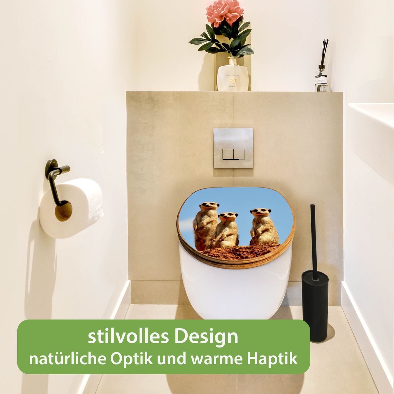 Design WC-Sitz Bambus Holz Motiv Erdmännchenfamilie
