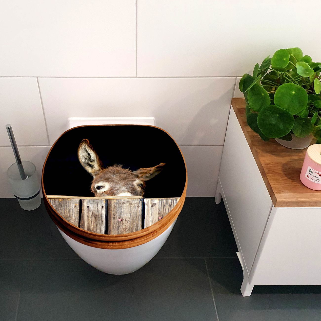 Design WC-Sitz Bambus Holz Motiv Esel