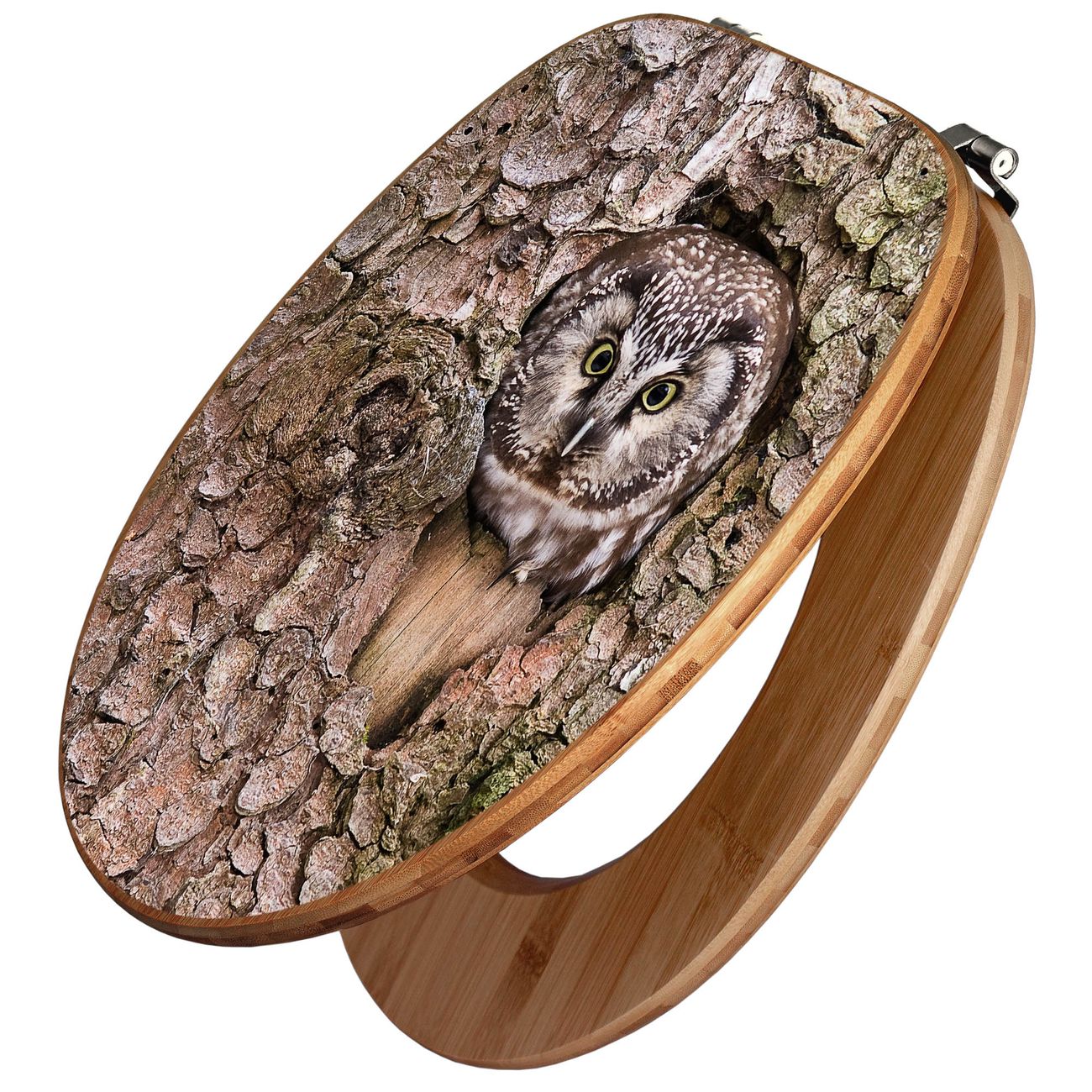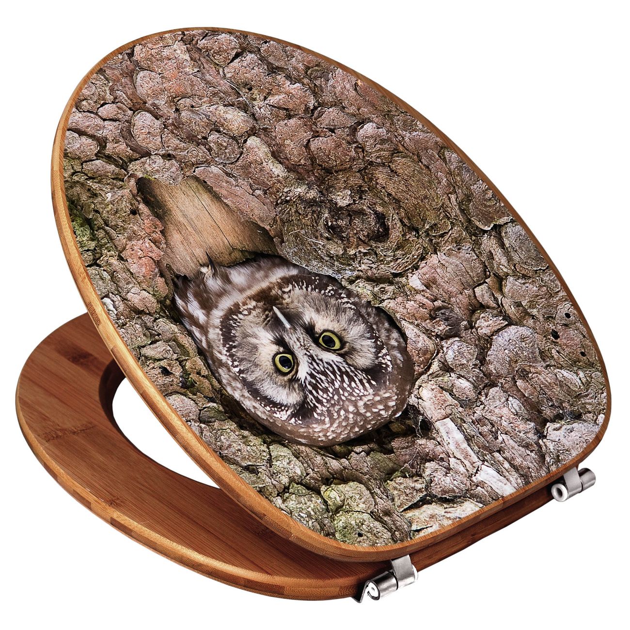 Mit dem banjado Toilettensitz in Bambus verbinden Sie Design und Funktionalität. Sie erhalten den WC-Sitz mit bewährt schwerer Holz Qualität und Universal Scharnieren. Das Motiv Motiv Eule besteht aus einer schutzlaminierten Motivfolie, die durch das Schutzlaminat zusätzlich vor Kratzern schützt. Durch diesen Motivdruck wird der WC-Sitz zu einem Blickfang in Ihrem Bad.
