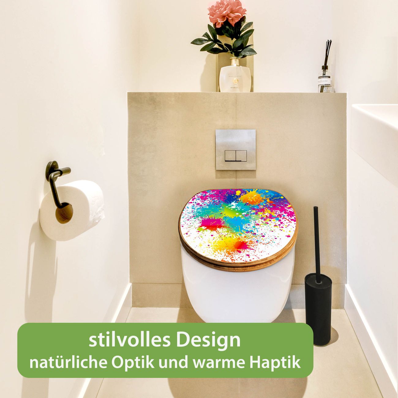 Design WC-Sitz Bambus Holz Motiv Farbspritzer