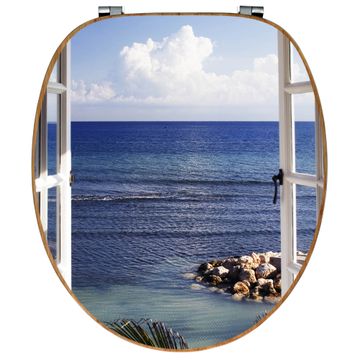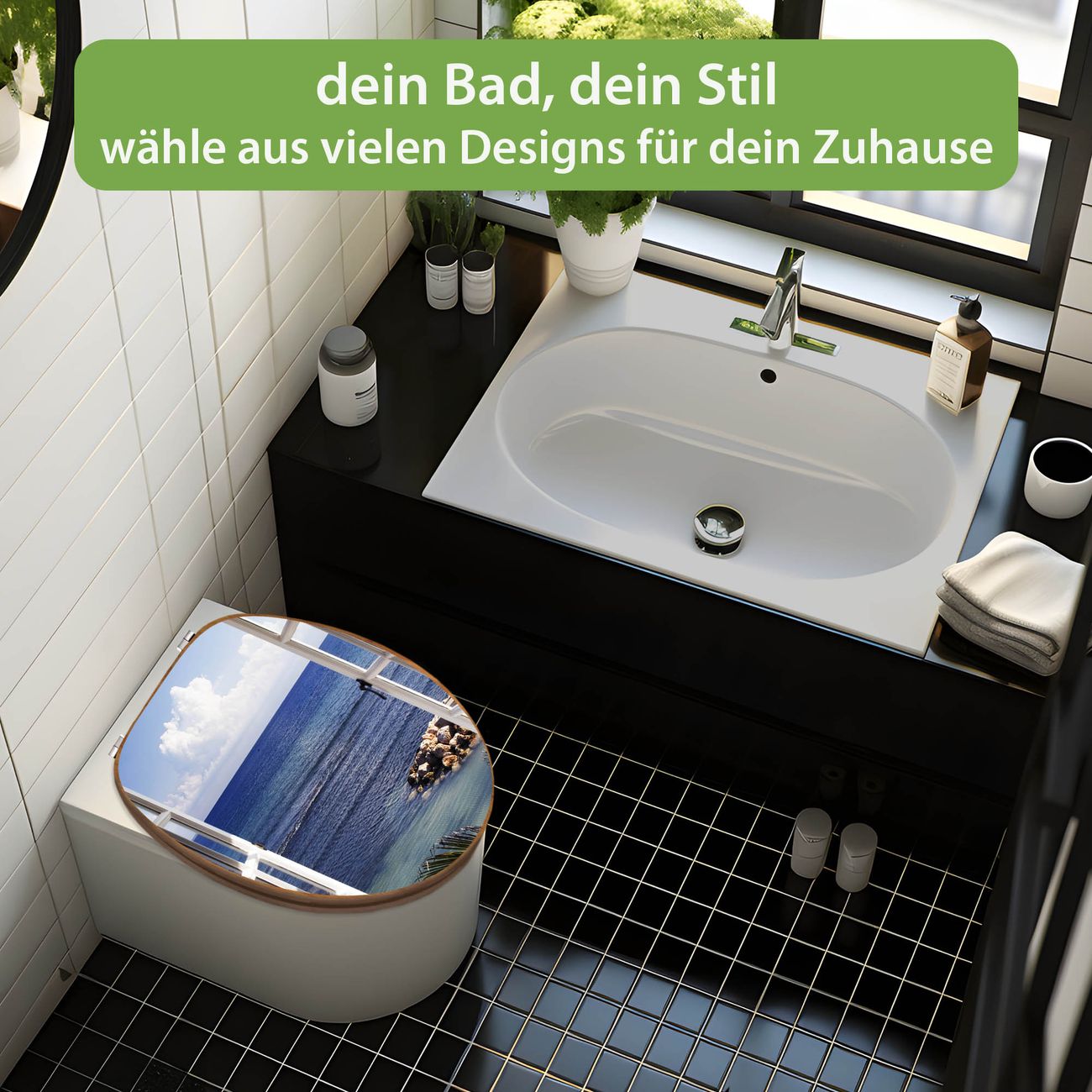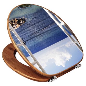 Mit dem banjado Toilettensitz in Bambus verbinden Sie Design und Funktionalität. Sie erhalten den WC-Sitz mit bewährt schwerer Holz Qualität und Universal Scharnieren. Das Motiv Motiv Fensterpanorama besteht aus einer schutzlaminierten Motivfolie, die durch das Schutzlaminat zusätzlich vor Kratzern schützt. Durch diesen Motivdruck wird der WC-Sitz zu einem Blickfang in Ihrem Bad.