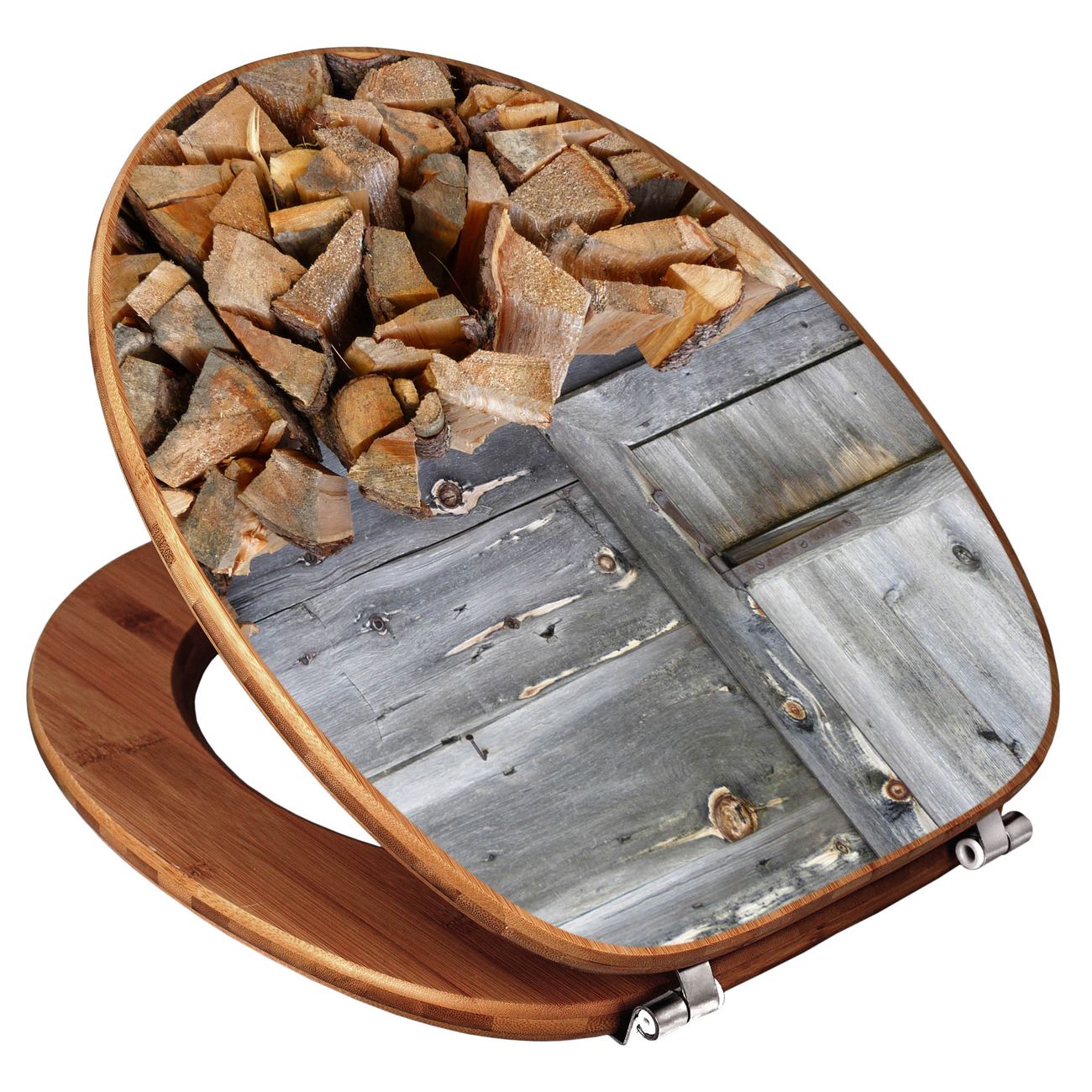 Design WC-Sitz Bambus Holz Motiv Feuerholz