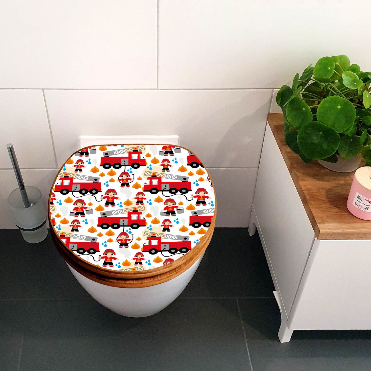 Design WC-Sitz Bambus Holz Motiv Feuerwehr