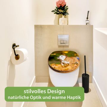 Mit dem banjado Toilettensitz in Bambus verbinden Sie Design und Funktionalität. Sie erhalten den WC-Sitz mit bewährt schwerer Holz Qualität und Universal Scharnieren. Das Motiv Motiv Fiona besteht aus einer schutzlaminierten Motivfolie, die durch das Schutzlaminat zusätzlich vor Kratzern schützt. Durch diesen Motivdruck wird der WC-Sitz zu einem Blickfang in Ihrem Bad.