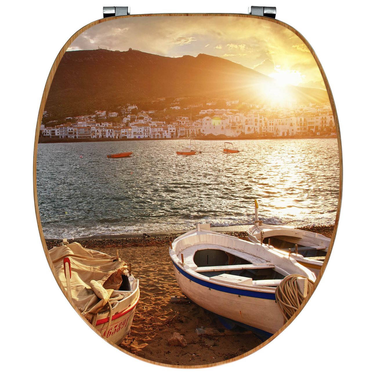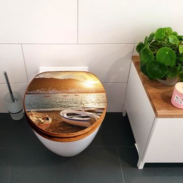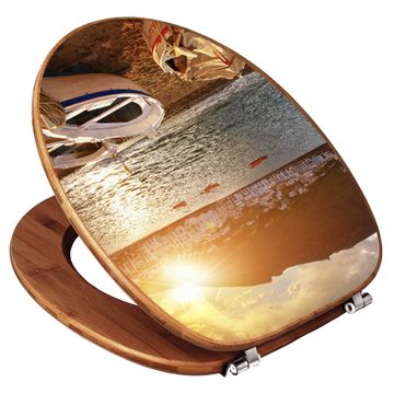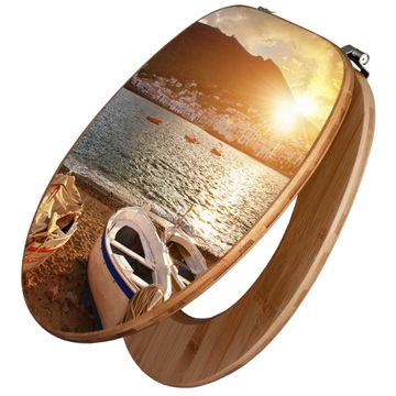 Design WC-Sitz Bambus Holz Motiv Fischerboote