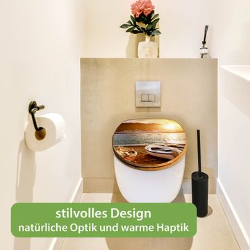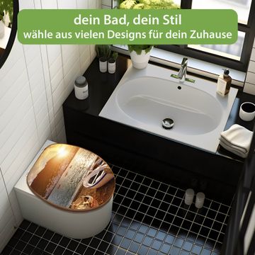 Mit dem banjado Toilettensitz in Bambus verbinden Sie Design und Funktionalität. Sie erhalten den WC-Sitz mit bewährt schwerer Holz Qualität und Universal Scharnieren. Das Motiv Motiv Fischerboote besteht aus einer schutzlaminierten Motivfolie, die durch das Schutzlaminat zusätzlich vor Kratzern schützt. Durch diesen Motivdruck wird der WC-Sitz zu einem Blickfang in Ihrem Bad.