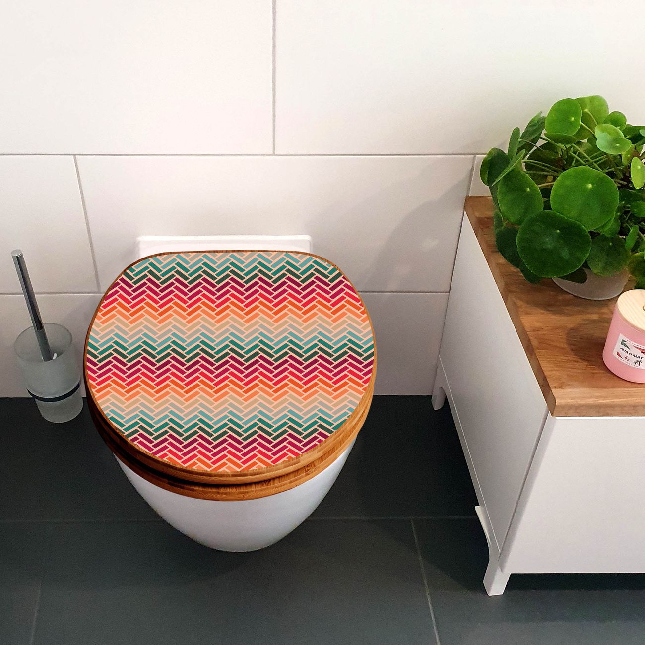 Design WC-Sitz Bambus Holz Motiv Fischgräten
