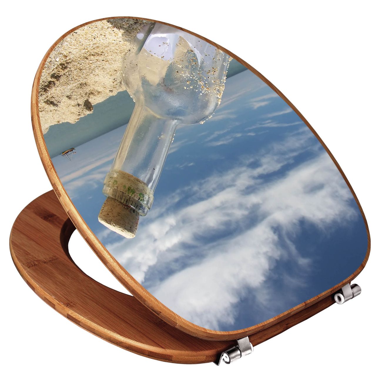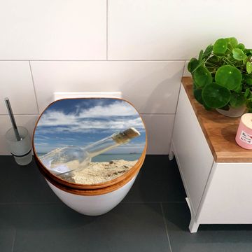 Design WC-Sitz Bambus Holz Motiv Flaschenpost