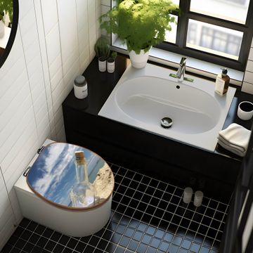 Mit dem banjado Toilettensitz in Bambus verbinden Sie Design und Funktionalität. Sie erhalten den WC-Sitz mit bewährt schwerer Holz Qualität und Universal Scharnieren. Das Motiv Motiv Flaschenpost besteht aus einer schutzlaminierten Motivfolie, die durch das Schutzlaminat zusätzlich vor Kratzern schützt. Durch diesen Motivdruck wird der WC-Sitz zu einem Blickfang in Ihrem Bad.