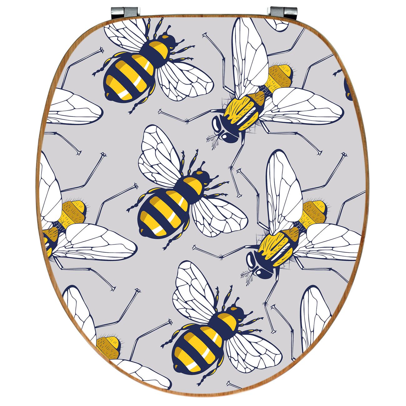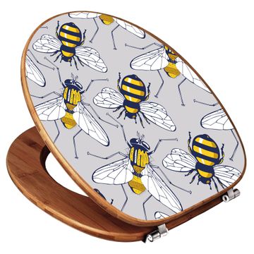 Design WC-Sitz Bambus Holz Motiv Fliegen und Bienen