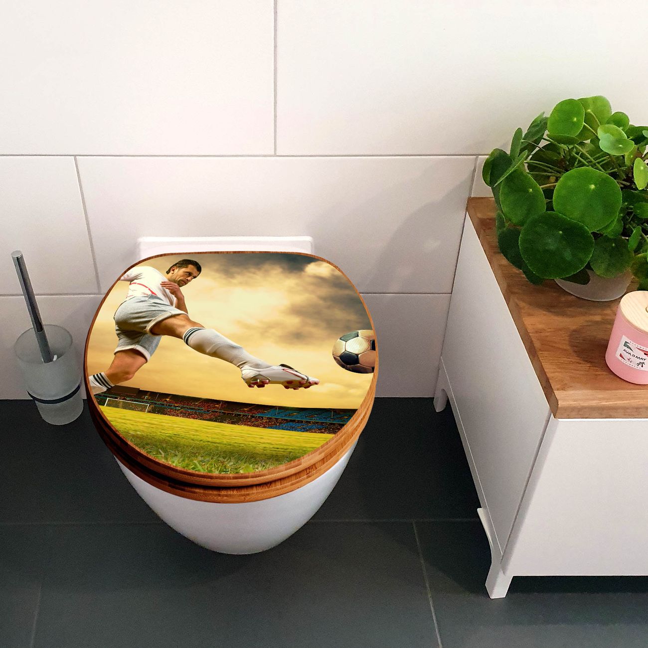 Design WC-Sitz Bambus Holz Motiv Football