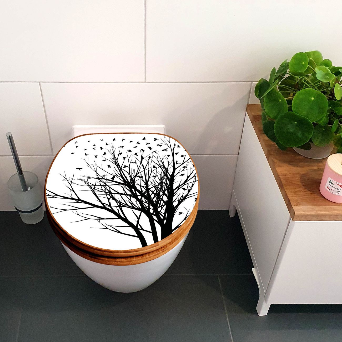 Design WC-Sitz Bambus Holz Motiv Fortfliegen