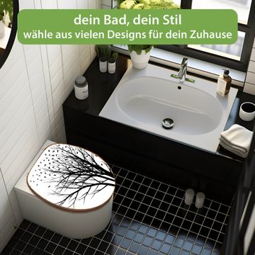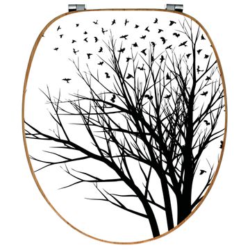 Mit dem banjado Toilettensitz in Bambus verbinden Sie Design und Funktionalität. Sie erhalten den WC-Sitz mit bewährt schwerer Holz Qualität und Universal Scharnieren. Das Motiv Motiv Fortfliegen besteht aus einer schutzlaminierten Motivfolie, die durch das Schutzlaminat zusätzlich vor Kratzern schützt. Durch diesen Motivdruck wird der WC-Sitz zu einem Blickfang in Ihrem Bad.