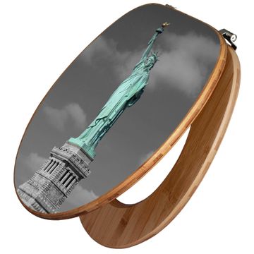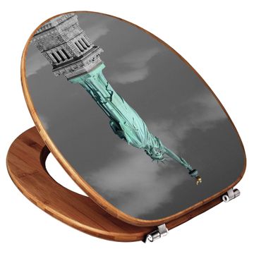 Design WC-Sitz Bambus Holz Motiv Freiheitsstatue