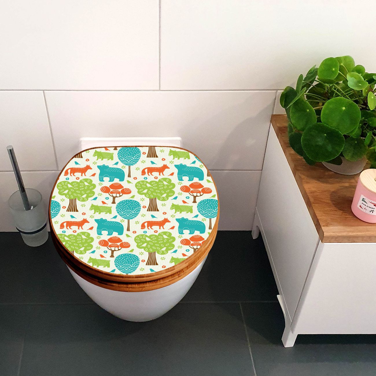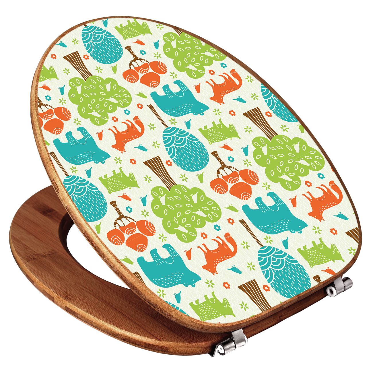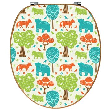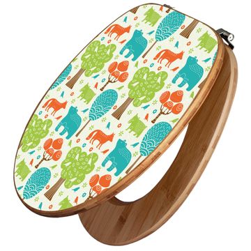 Design WC-Sitz Bambus Holz Motiv Fuchs Bär Wald