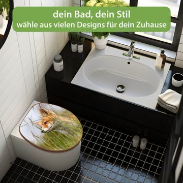 Mit dem banjado Toilettensitz in Bambus verbinden Sie Design und Funktionalität. Sie erhalten den WC-Sitz mit bewährt schwerer Holz Qualität und Universal Scharnieren. Das Motiv Motiv Fuchs besteht aus einer schutzlaminierten Motivfolie, die durch das Schutzlaminat zusätzlich vor Kratzern schützt. Durch diesen Motivdruck wird der WC-Sitz zu einem Blickfang in Ihrem Bad.