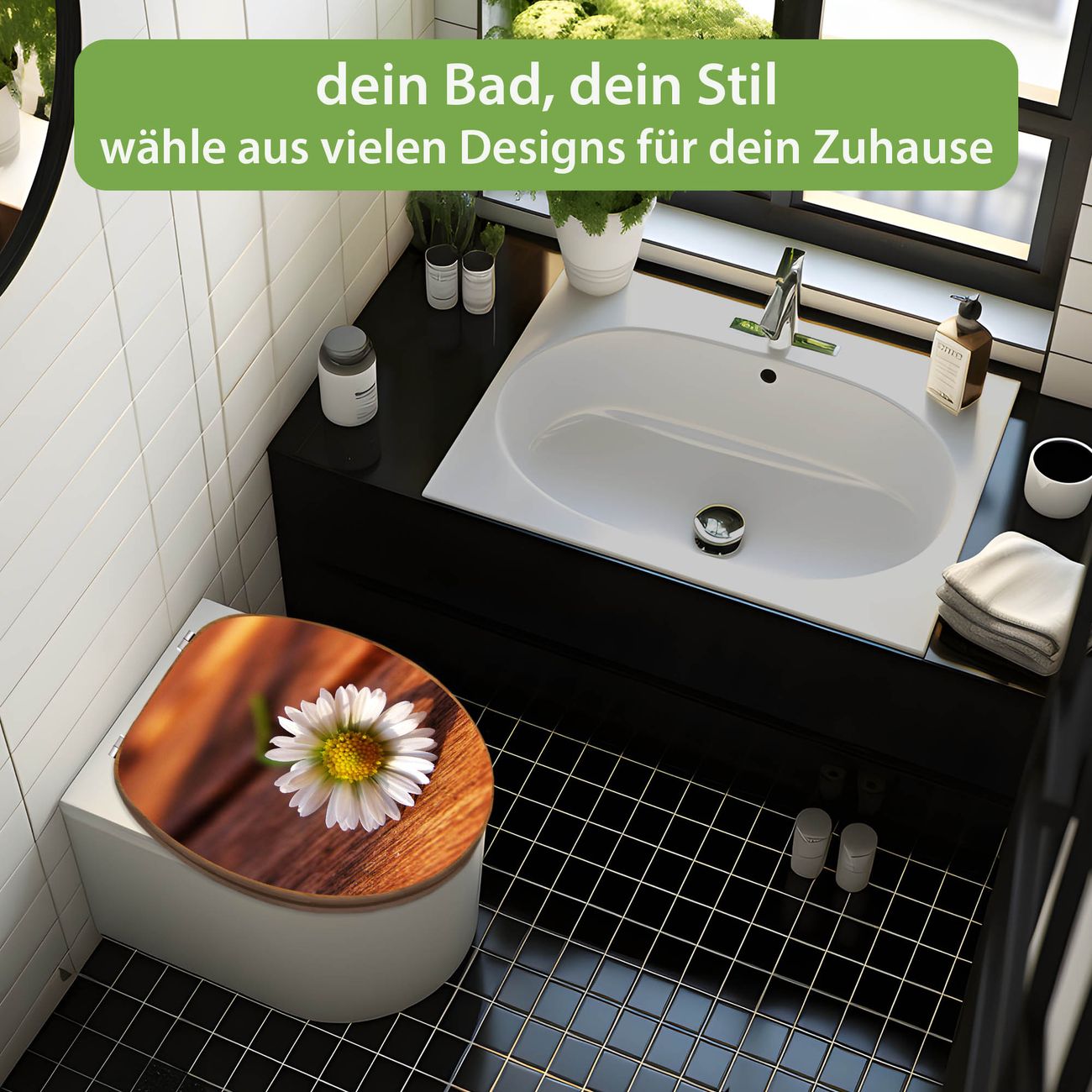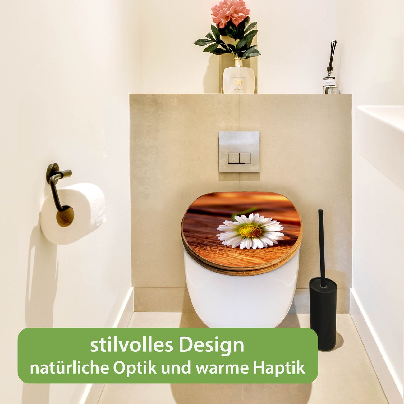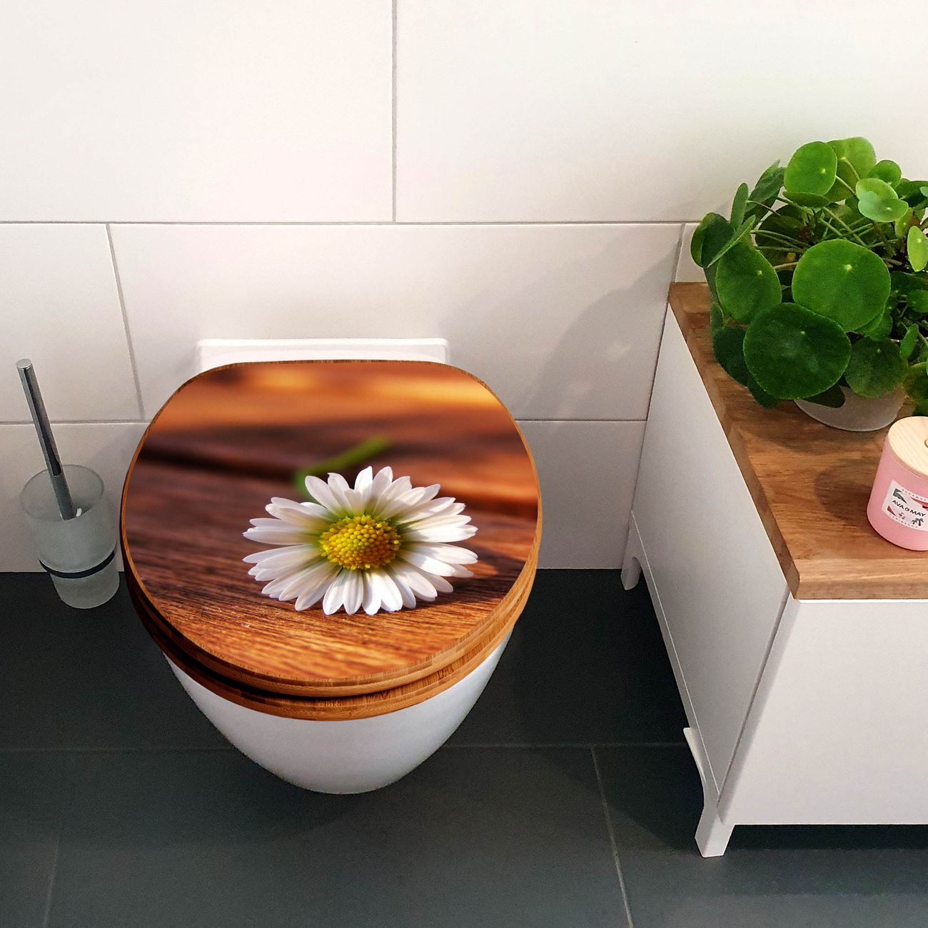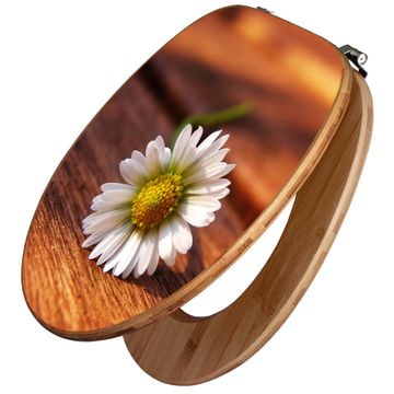 Design WC-Sitz Bambus Holz Motiv Gänseblümchen