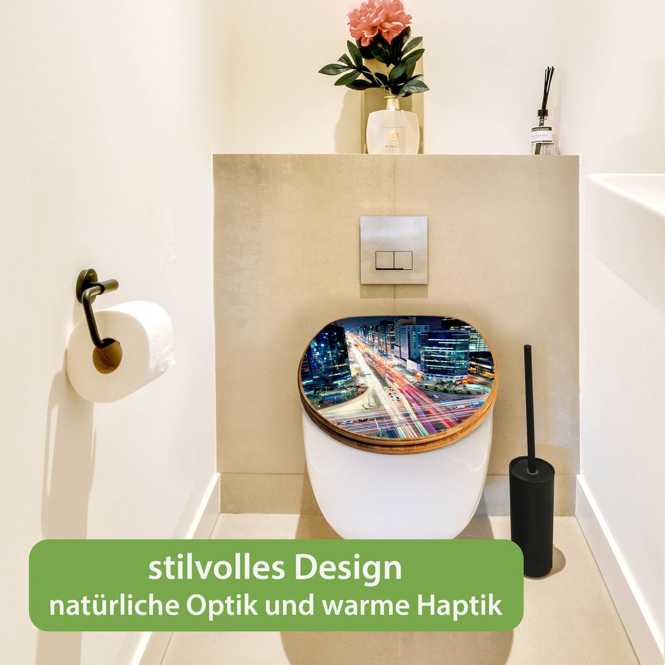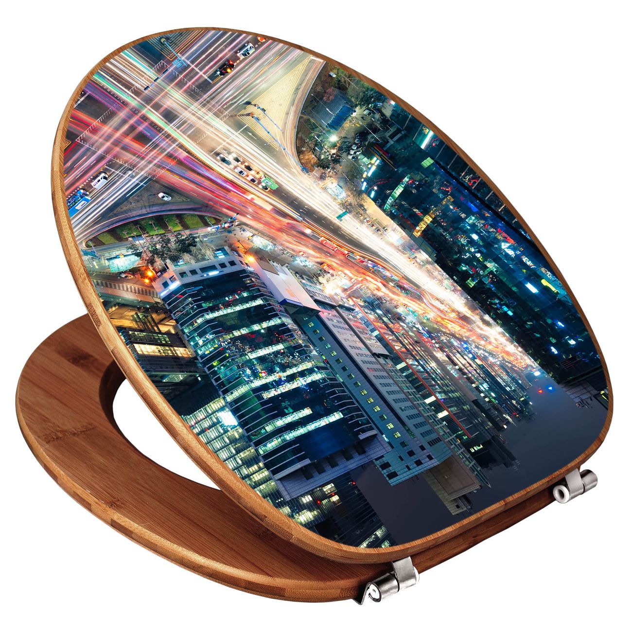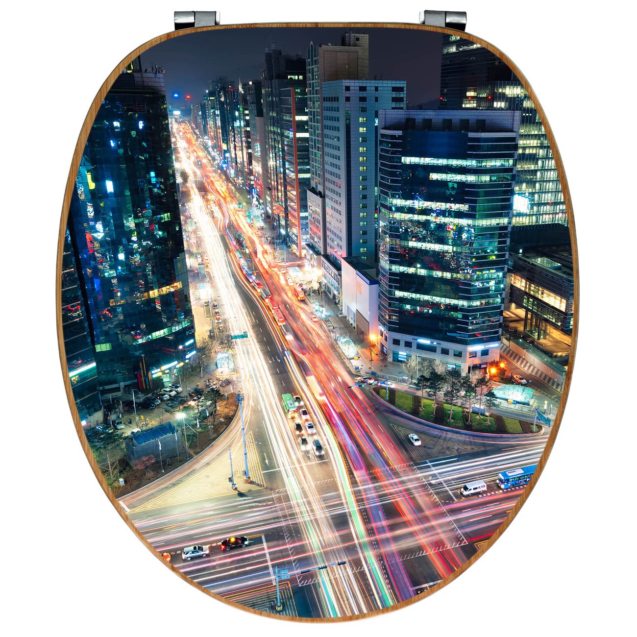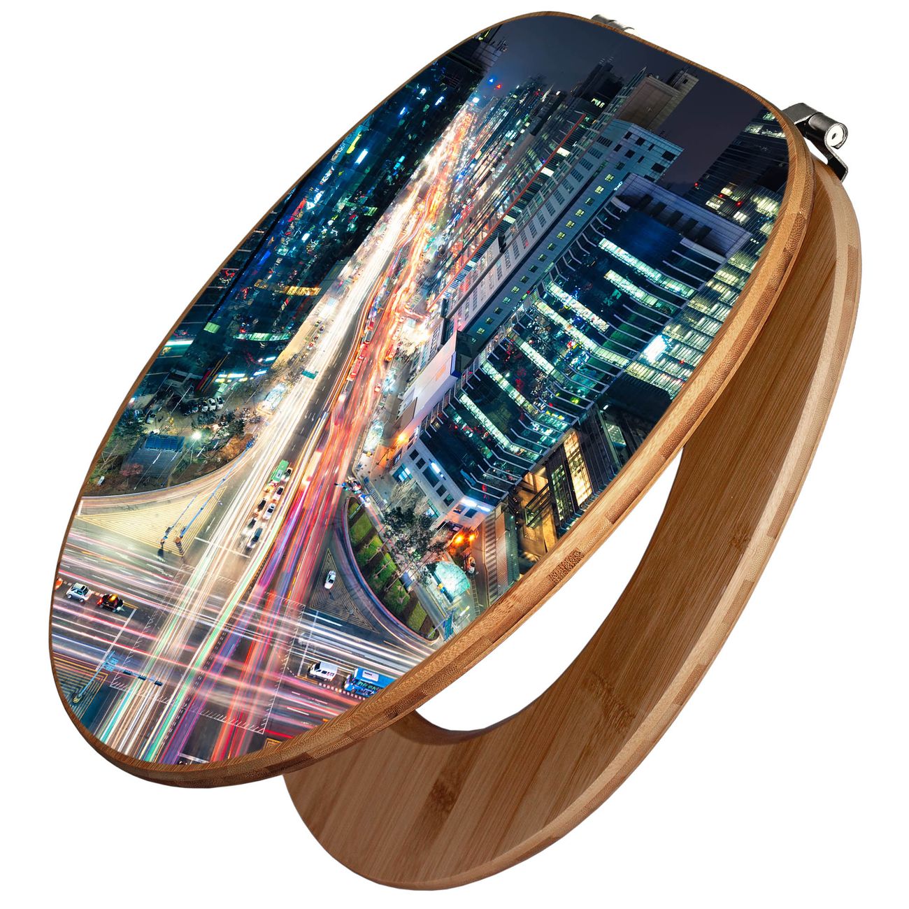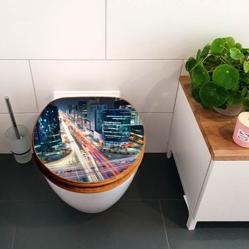 Design WC-Sitz Bambus Holz Motiv Gangnam Bei Nacht