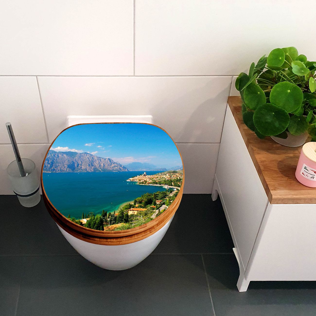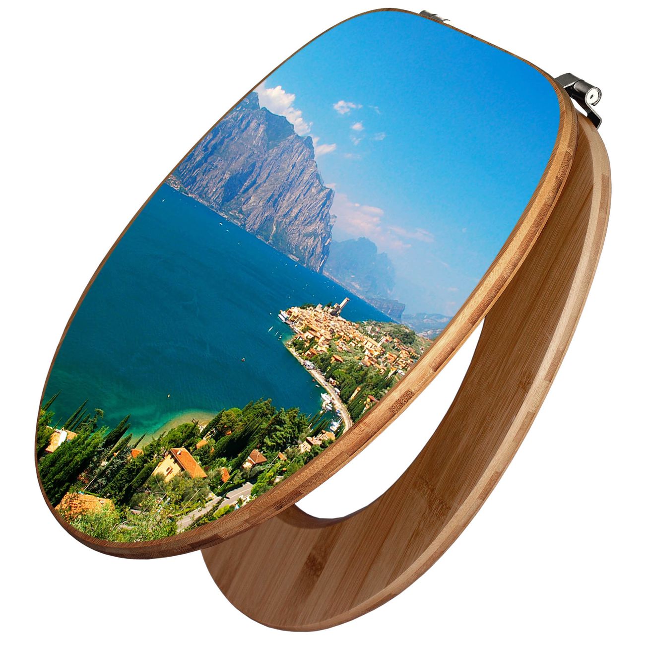 Design WC-Sitz Bambus Holz Motiv Gardasee