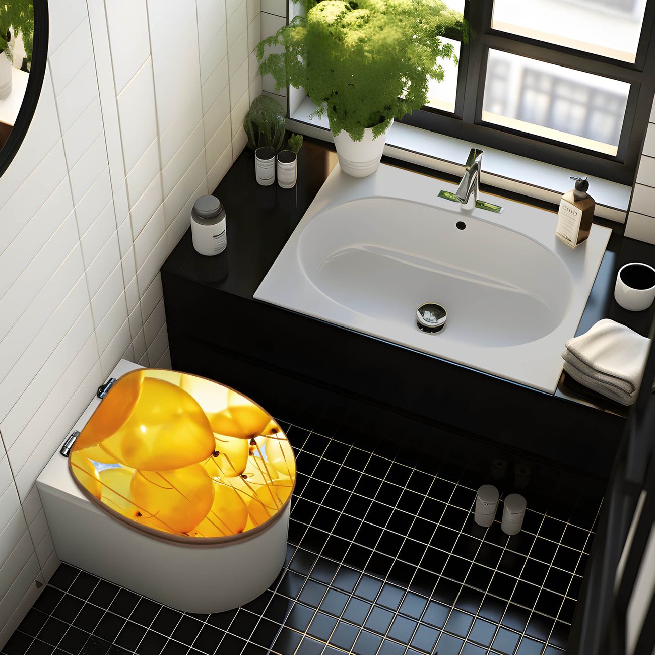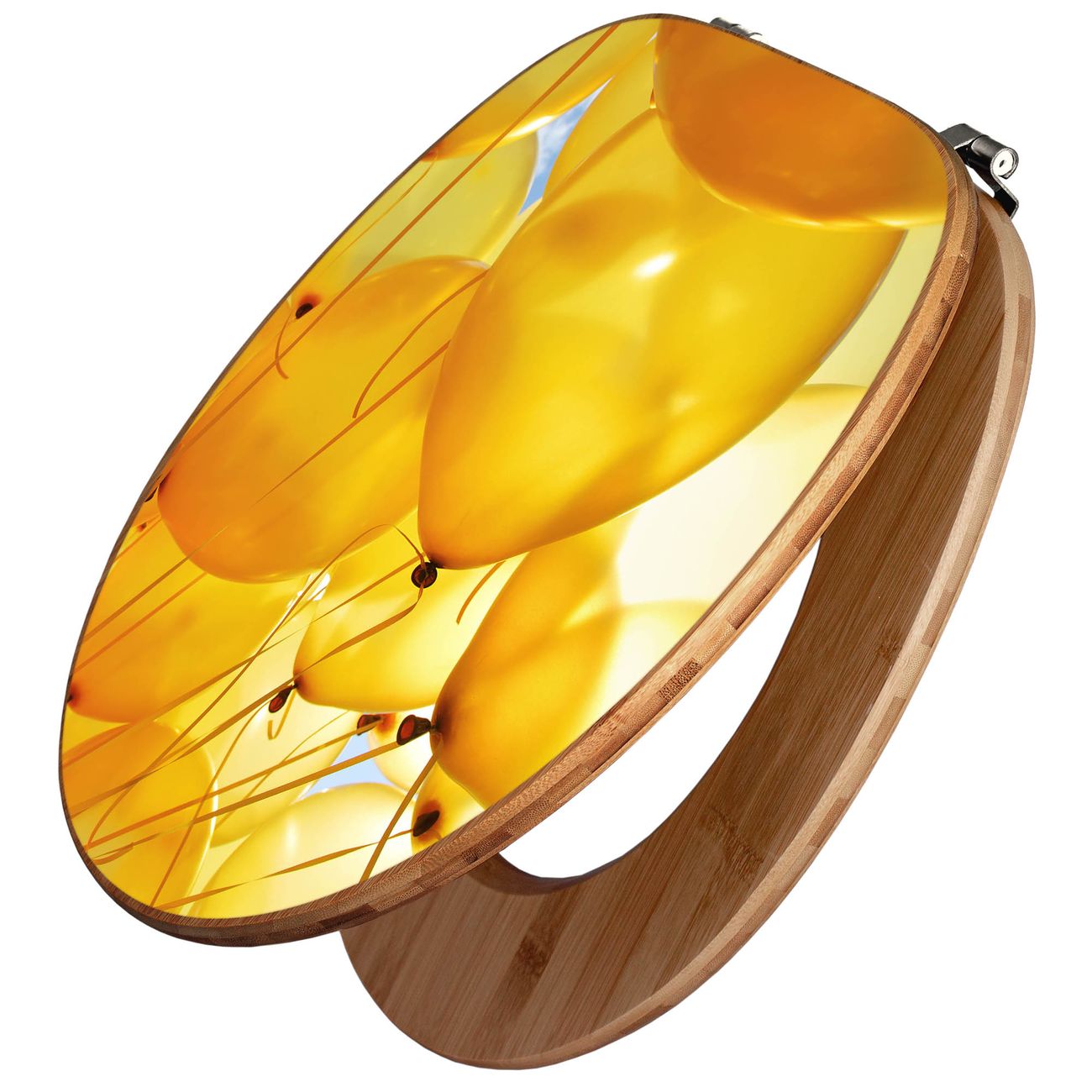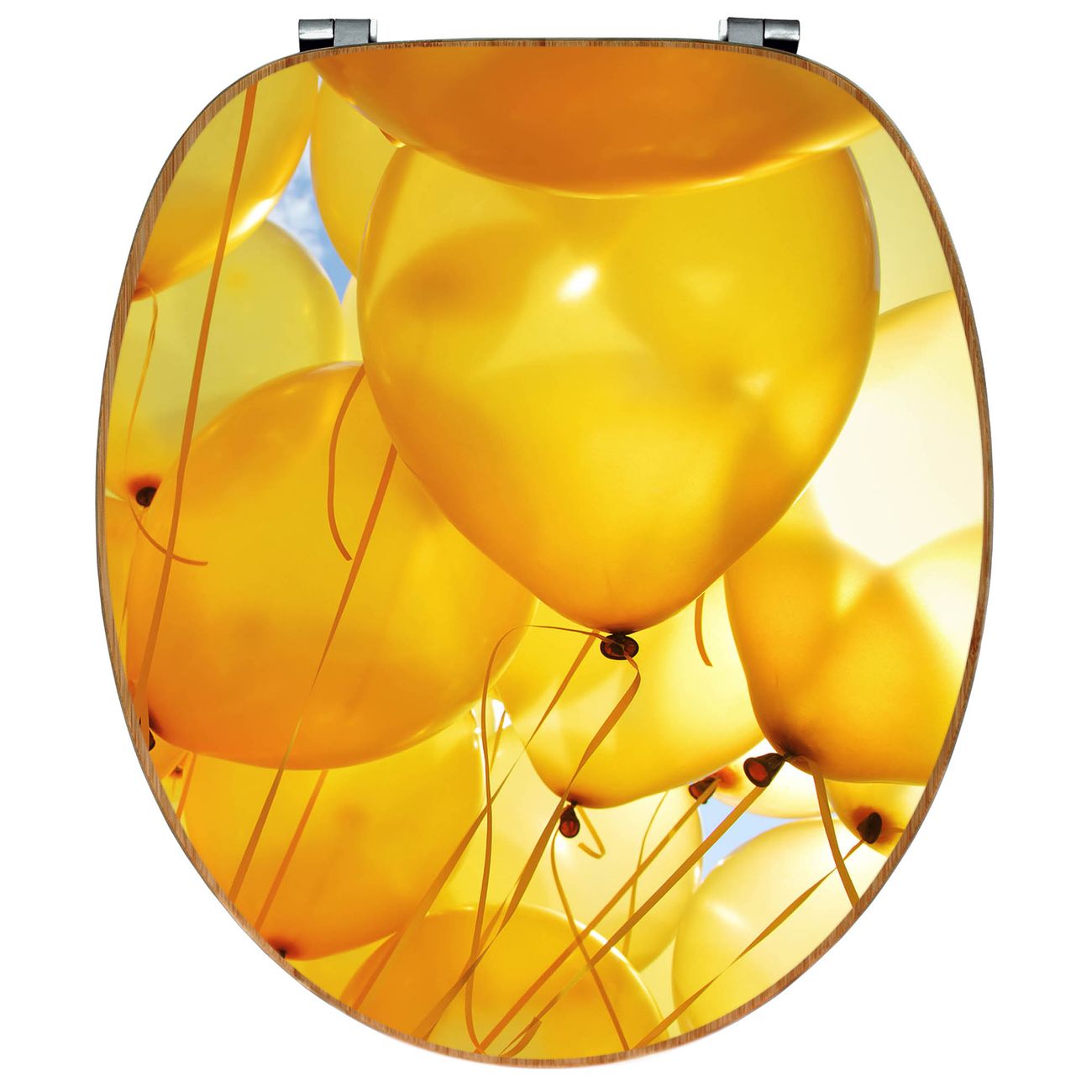 Design WC-Sitz Bambus Holz Motiv Gelbe Luftballons