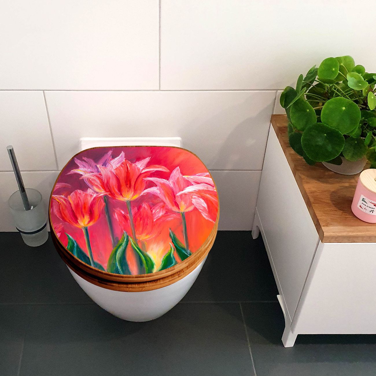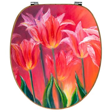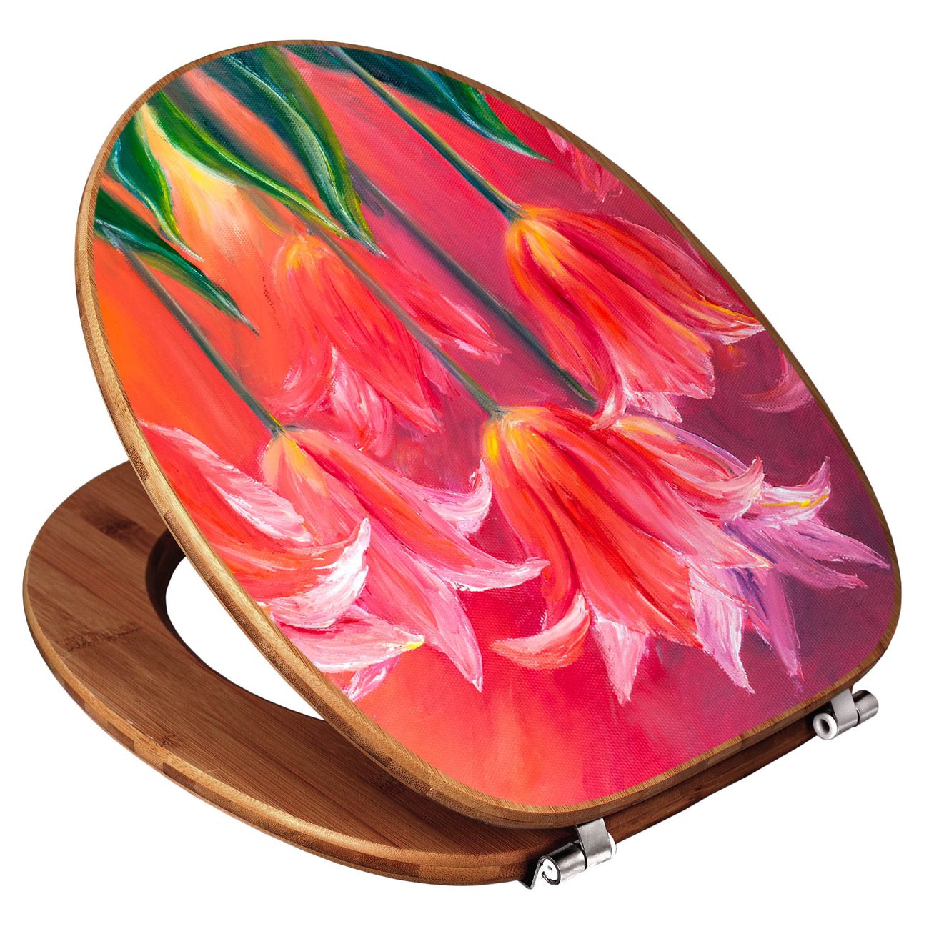 Design WC-Sitz Bambus Holz Motiv Gemalte Tulpen