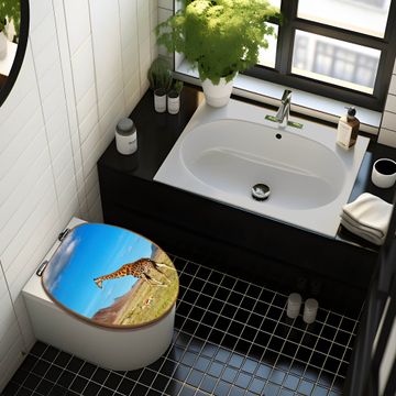 Mit dem banjado Toilettensitz in Bambus verbinden Sie Design und Funktionalität. Sie erhalten den WC-Sitz mit bewährt schwerer Holz Qualität und Universal Scharnieren. Das Motiv Motiv Giraffe besteht aus einer schutzlaminierten Motivfolie, die durch das Schutzlaminat zusätzlich vor Kratzern schützt. Durch diesen Motivdruck wird der WC-Sitz zu einem Blickfang in Ihrem Bad.