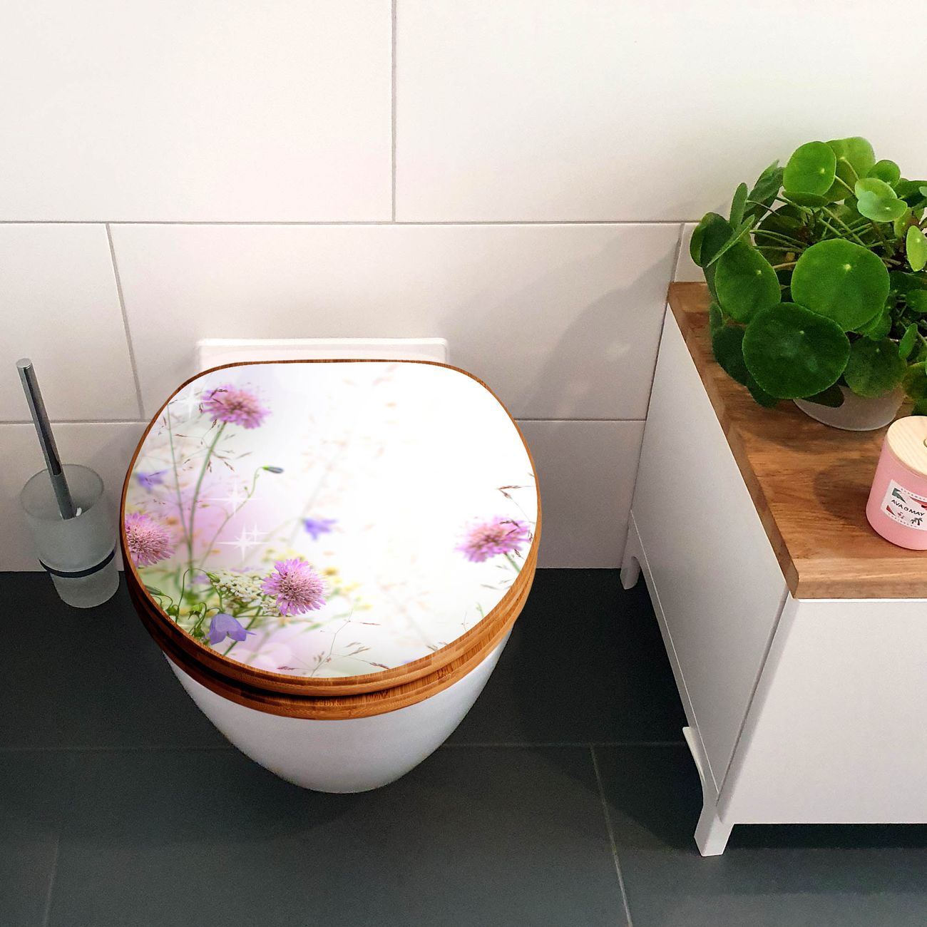 Design WC-Sitz Bambus Holz Motiv Glitzernde Wiese