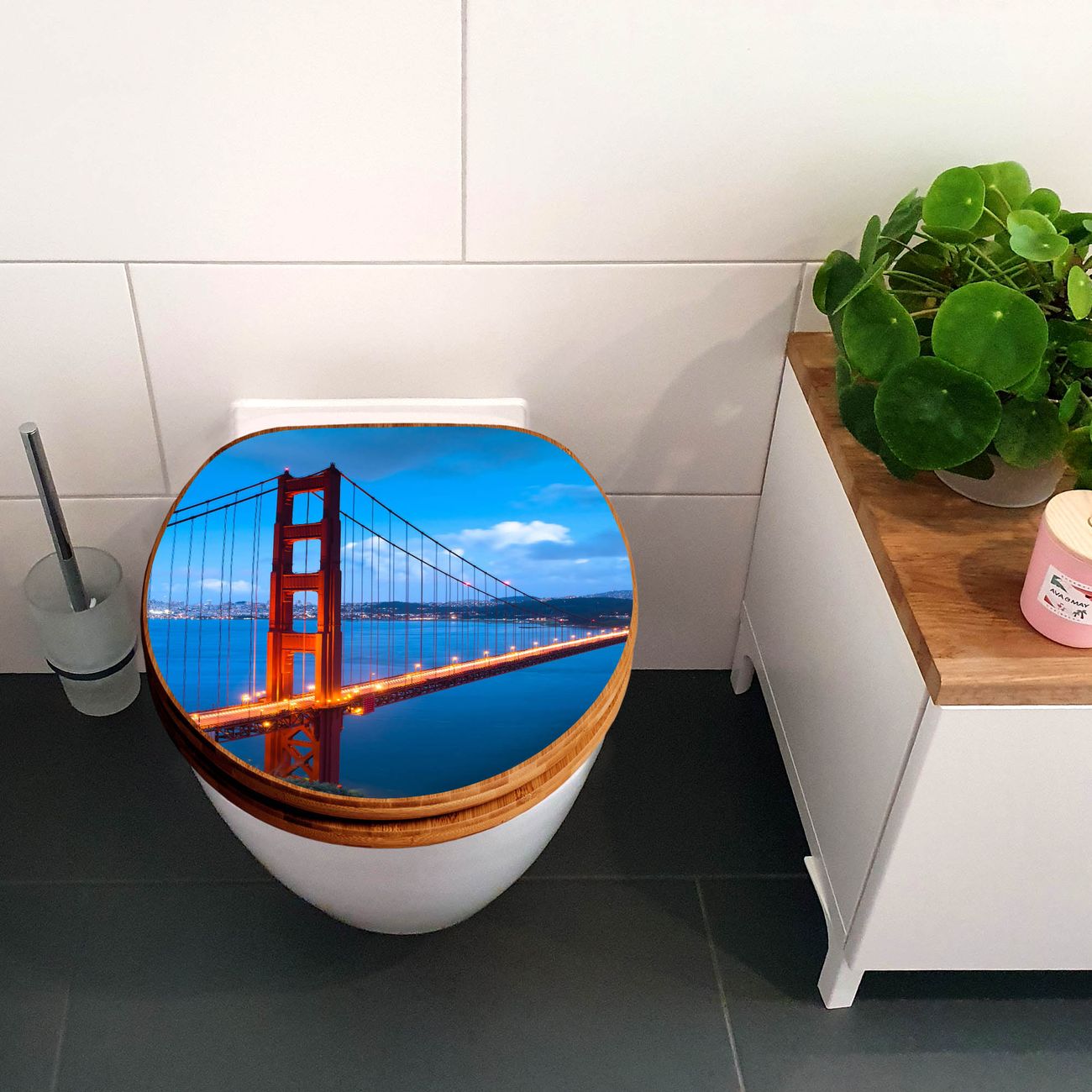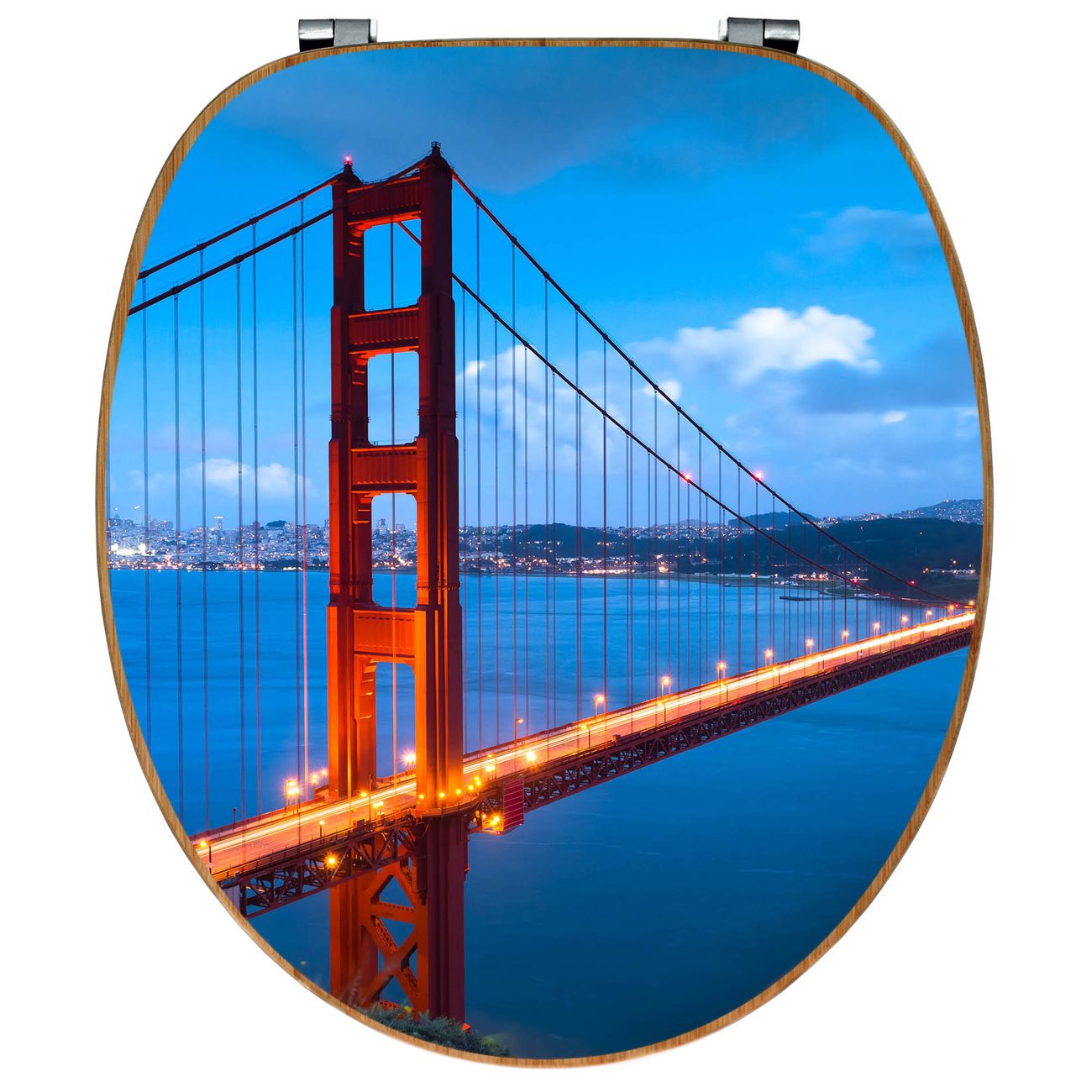 Design WC-Sitz Bambus Holz Motiv Golden Gate Bridge