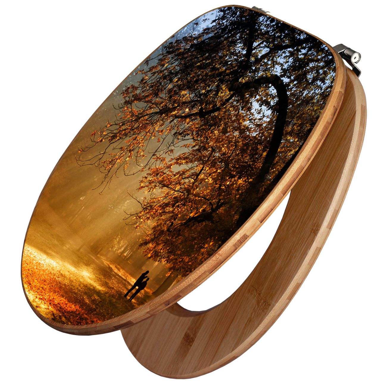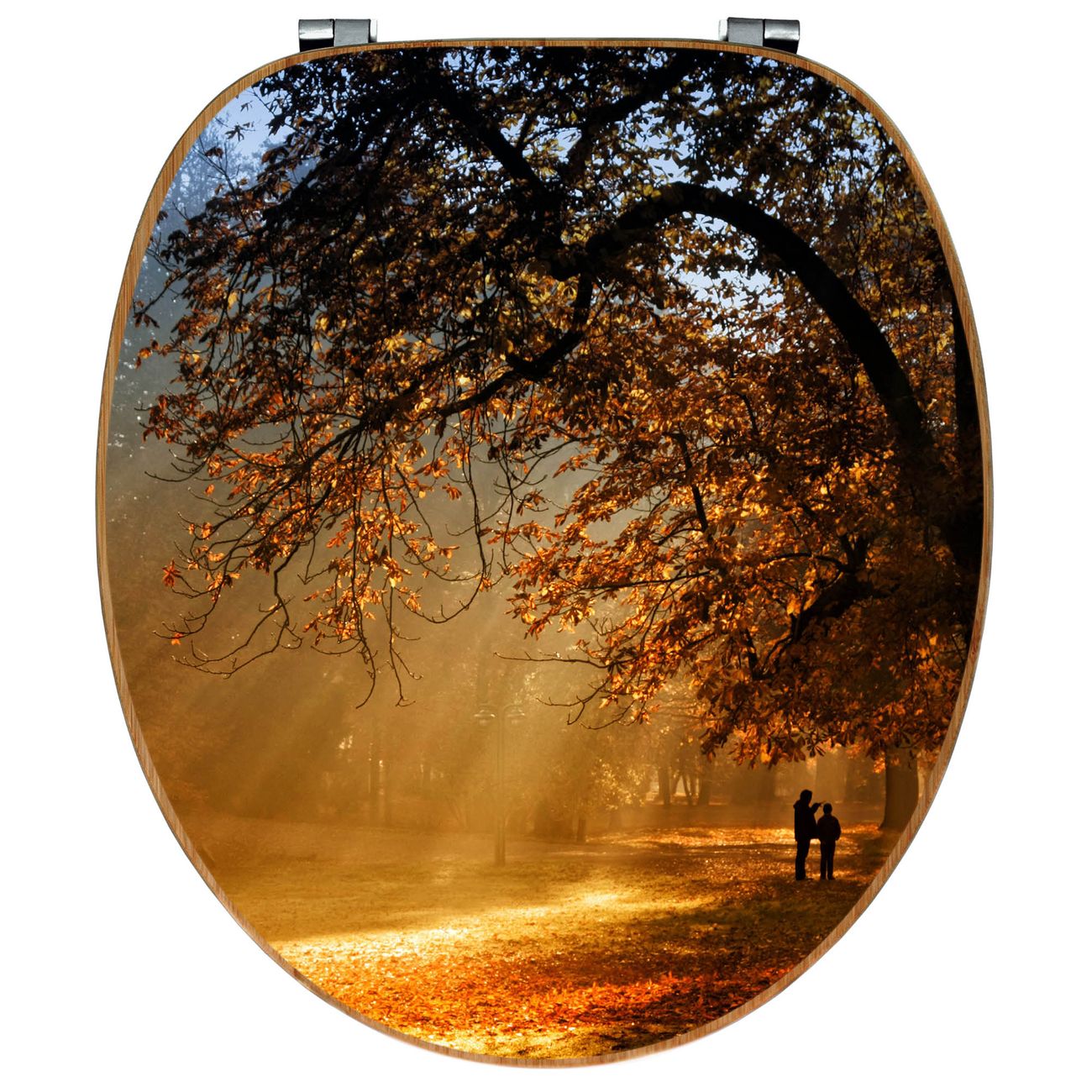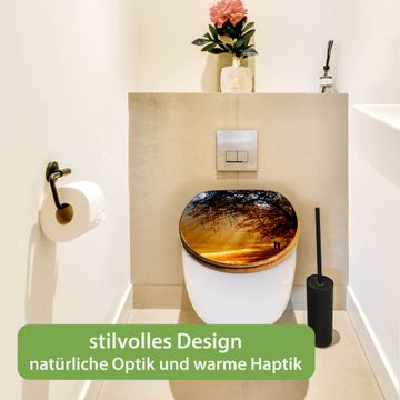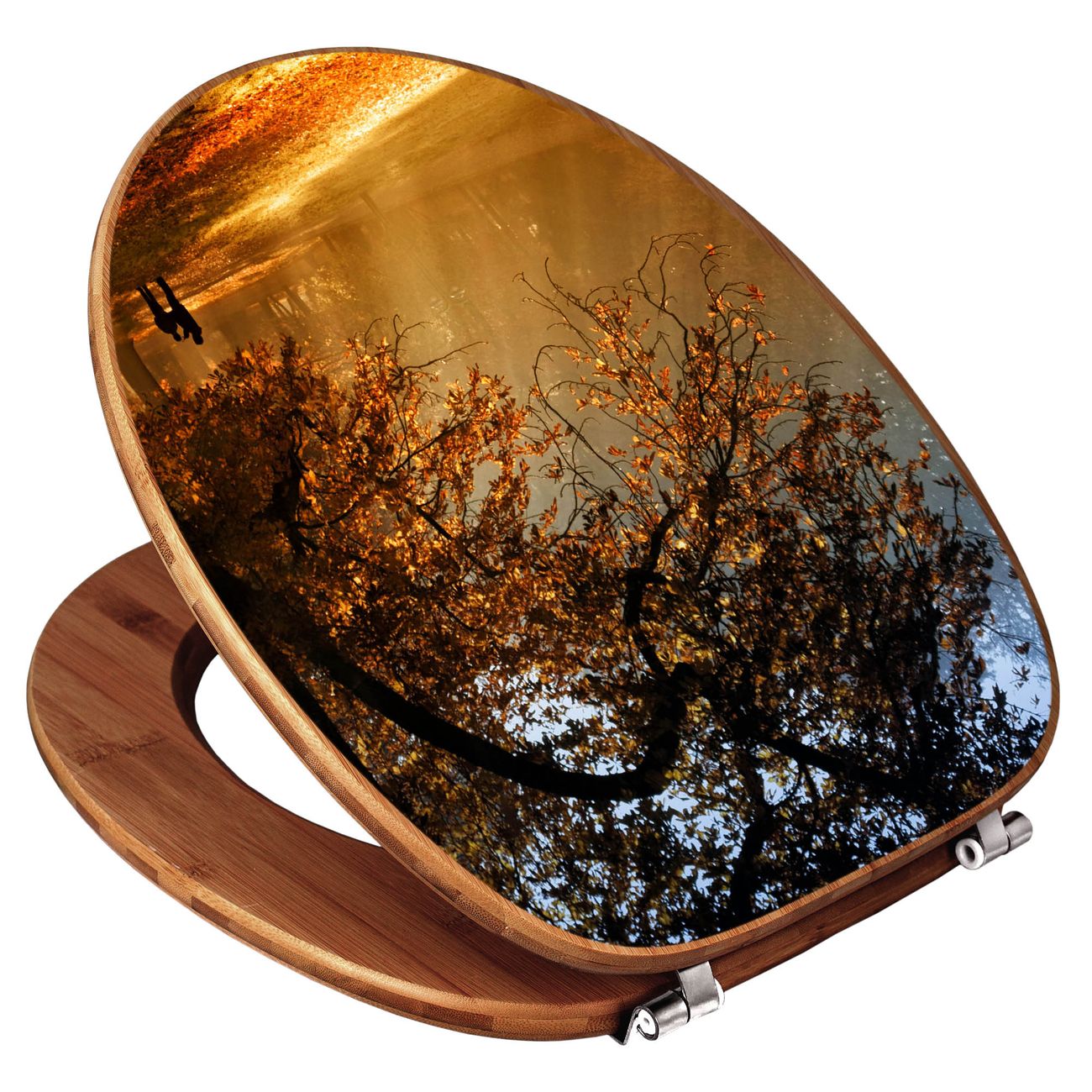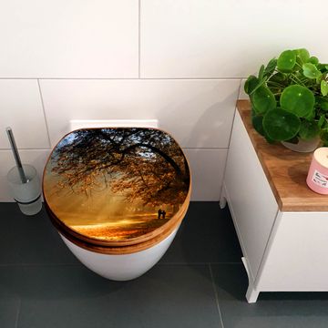 Mit dem banjado Toilettensitz in Bambus verbinden Sie Design und Funktionalität. Sie erhalten den WC-Sitz mit bewährt schwerer Holz Qualität und Universal Scharnieren. Das Motiv Motiv Goldener Herbst besteht aus einer schutzlaminierten Motivfolie, die durch das Schutzlaminat zusätzlich vor Kratzern schützt. Durch diesen Motivdruck wird der WC-Sitz zu einem Blickfang in Ihrem Bad.