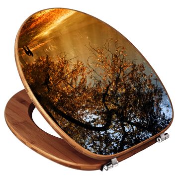 Design WC-Sitz Bambus Holz Motiv Goldener Herbst