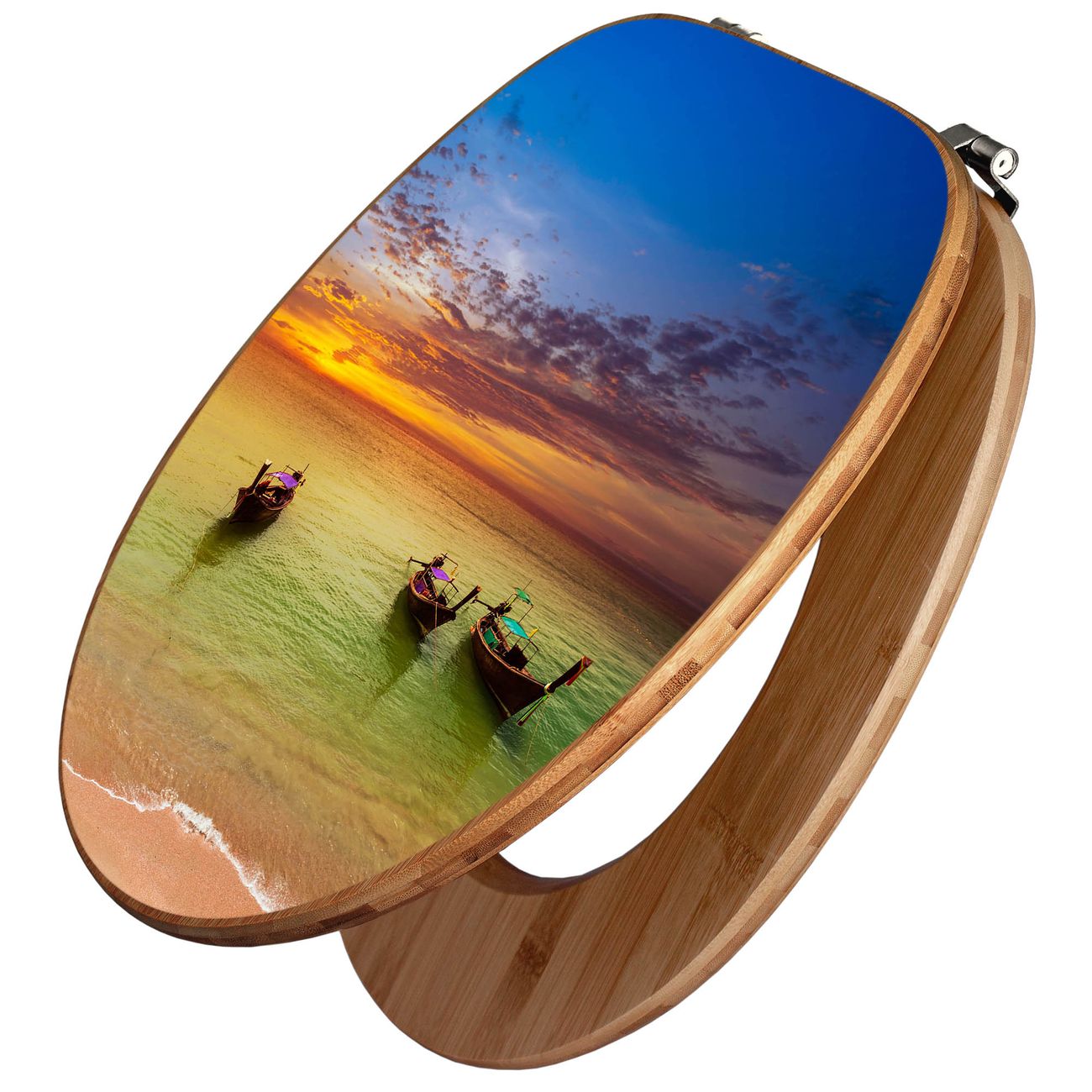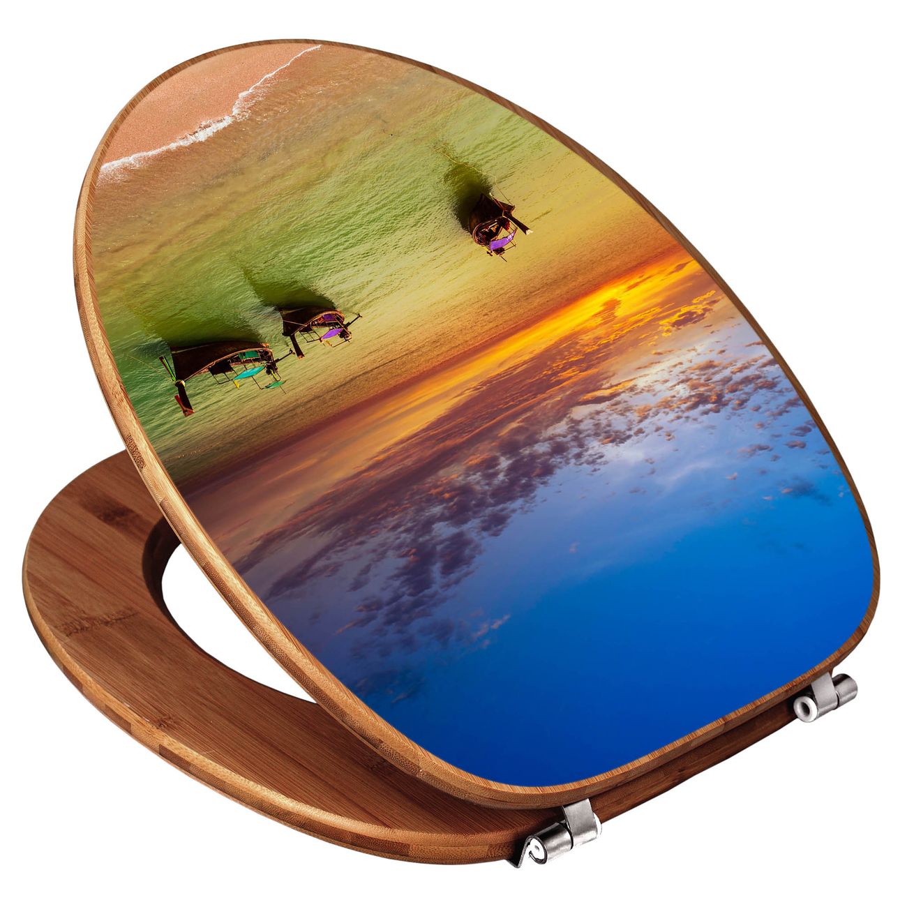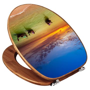 Mit dem banjado Toilettensitz in Bambus verbinden Sie Design und Funktionalität. Sie erhalten den WC-Sitz mit bewährt schwerer Holz Qualität und Universal Scharnieren. Das Motiv Motiv Golf Von Thailand besteht aus einer schutzlaminierten Motivfolie, die durch das Schutzlaminat zusätzlich vor Kratzern schützt. Durch diesen Motivdruck wird der WC-Sitz zu einem Blickfang in Ihrem Bad.