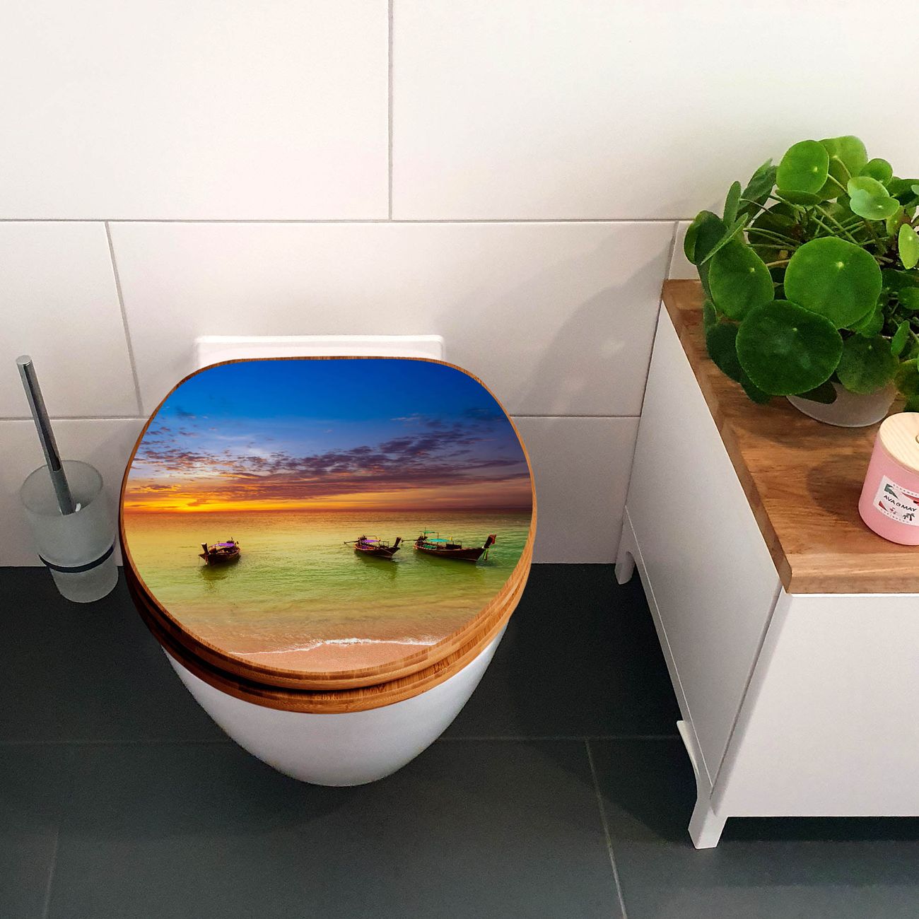 Ihr WC-Deckel wird in Sachsen in einer kleinen Manufaktur von Hand veredelt. Die Motivfolie ist lösungsmittelfrei und schutzlaminiert für einen langen Halt. Viel Freude wünscht Ihnen banjado.