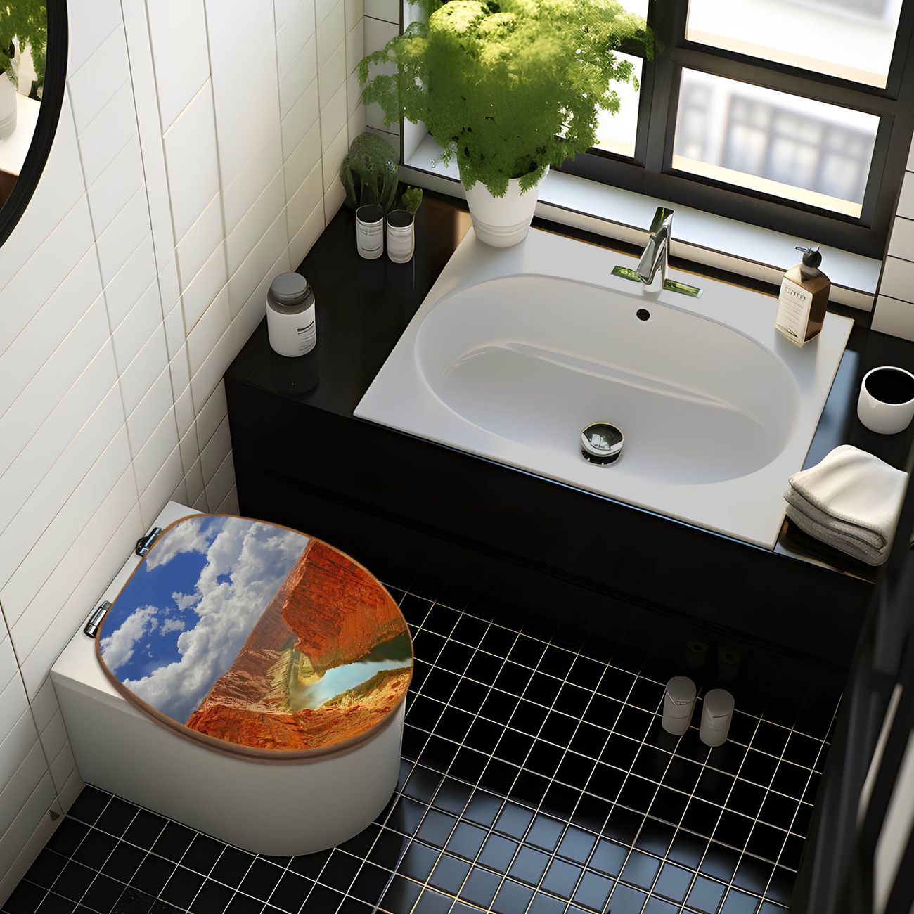 Mit dem banjado Toilettensitz in Bambus verbinden Sie Design und Funktionalität. Sie erhalten den WC-Sitz mit bewährt schwerer Holz Qualität und Universal Scharnieren. Das Motiv Motiv Grand Canyon besteht aus einer schutzlaminierten Motivfolie, die durch das Schutzlaminat zusätzlich vor Kratzern schützt. Durch diesen Motivdruck wird der WC-Sitz zu einem Blickfang in Ihrem Bad.