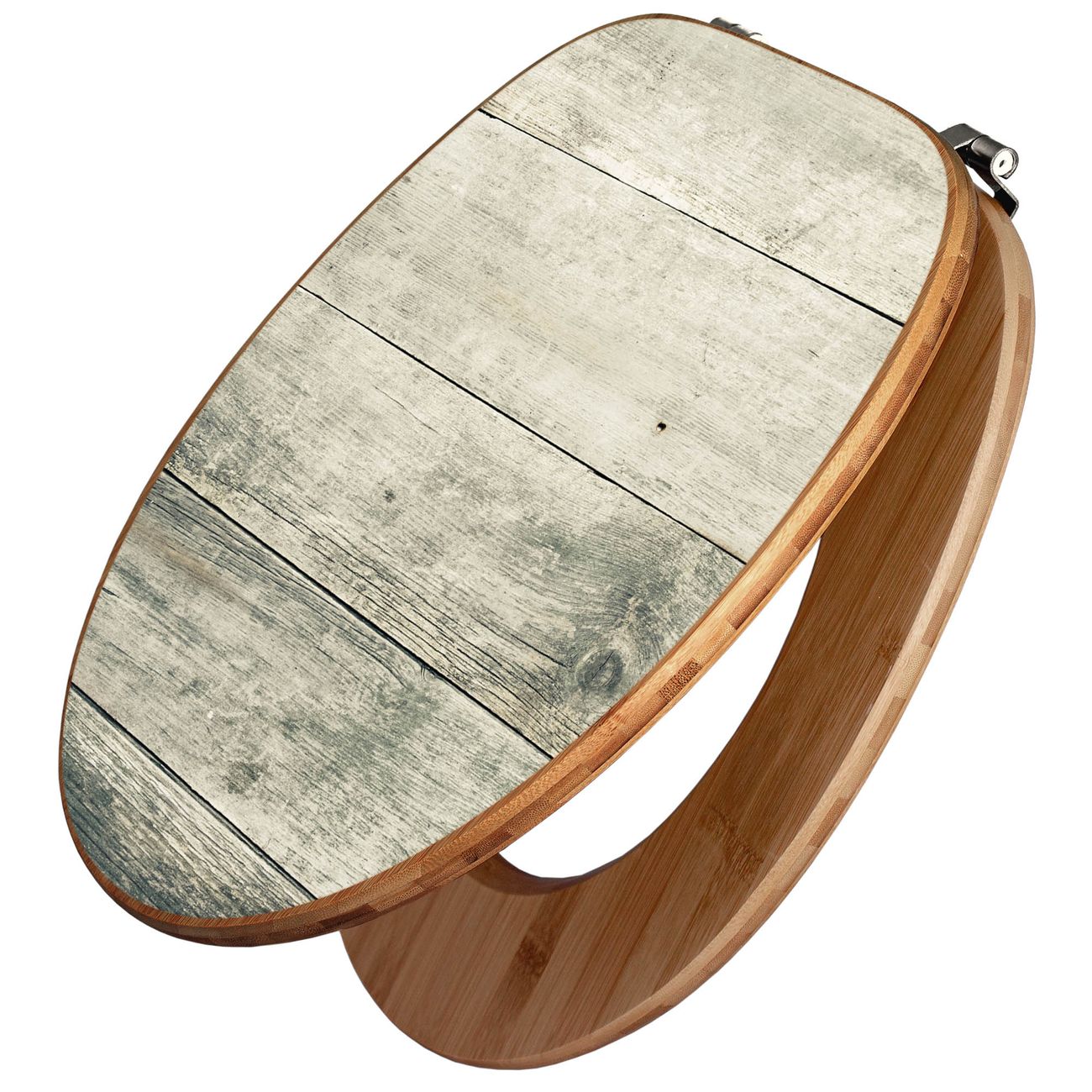 Mit dem banjado Toilettensitz in Bambus verbinden Sie Design und Funktionalität. Sie erhalten den WC-Sitz mit bewährt schwerer Holz Qualität und Universal Scharnieren. Das Motiv Motiv Graue Planken besteht aus einer schutzlaminierten Motivfolie, die durch das Schutzlaminat zusätzlich vor Kratzern schützt. Durch diesen Motivdruck wird der WC-Sitz zu einem Blickfang in Ihrem Bad.