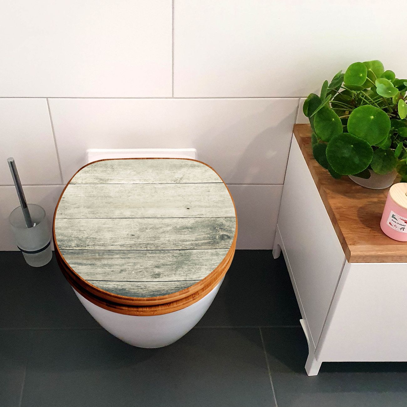Design WC-Sitz Bambus Holz Motiv Graue Planken