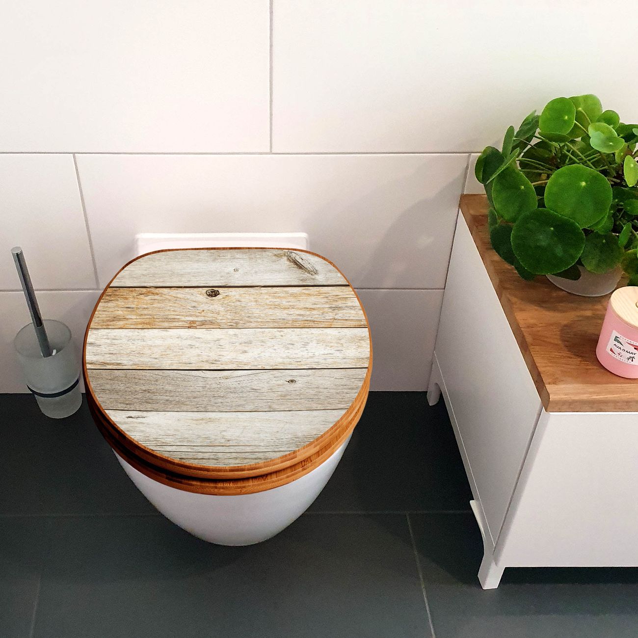 Design WC-Sitz Bambus Holz Motiv Graues Holz