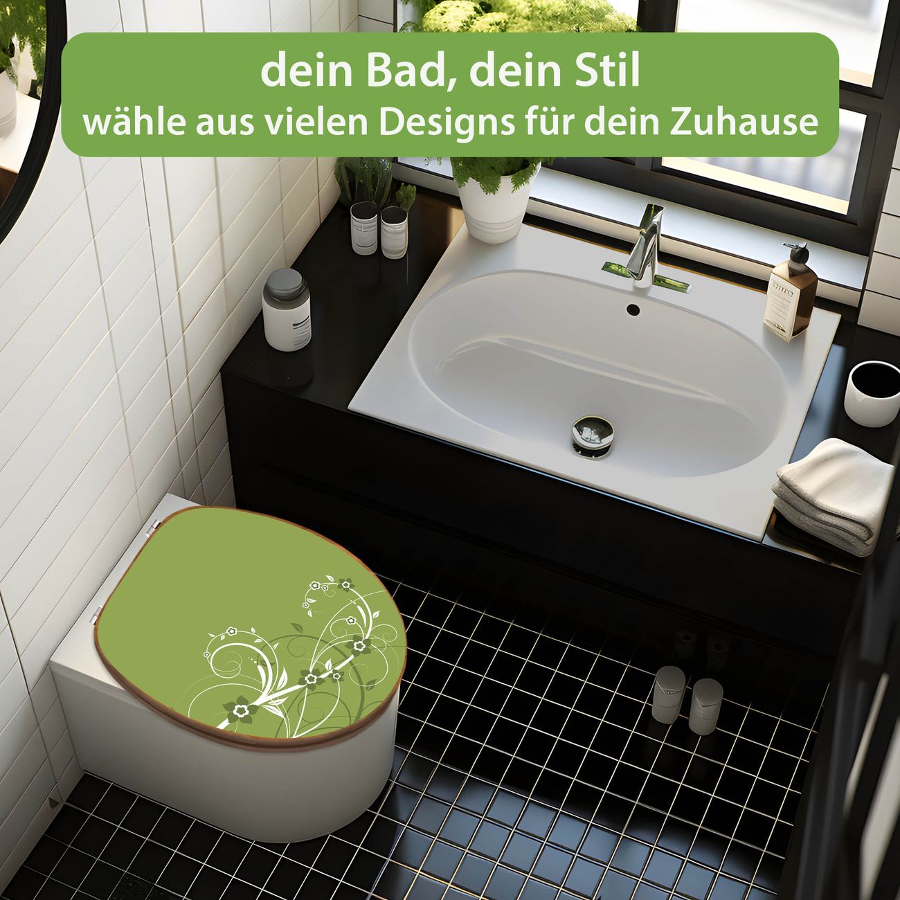 Design WC-Sitz Bambus Holz Motiv Grüne Blüten