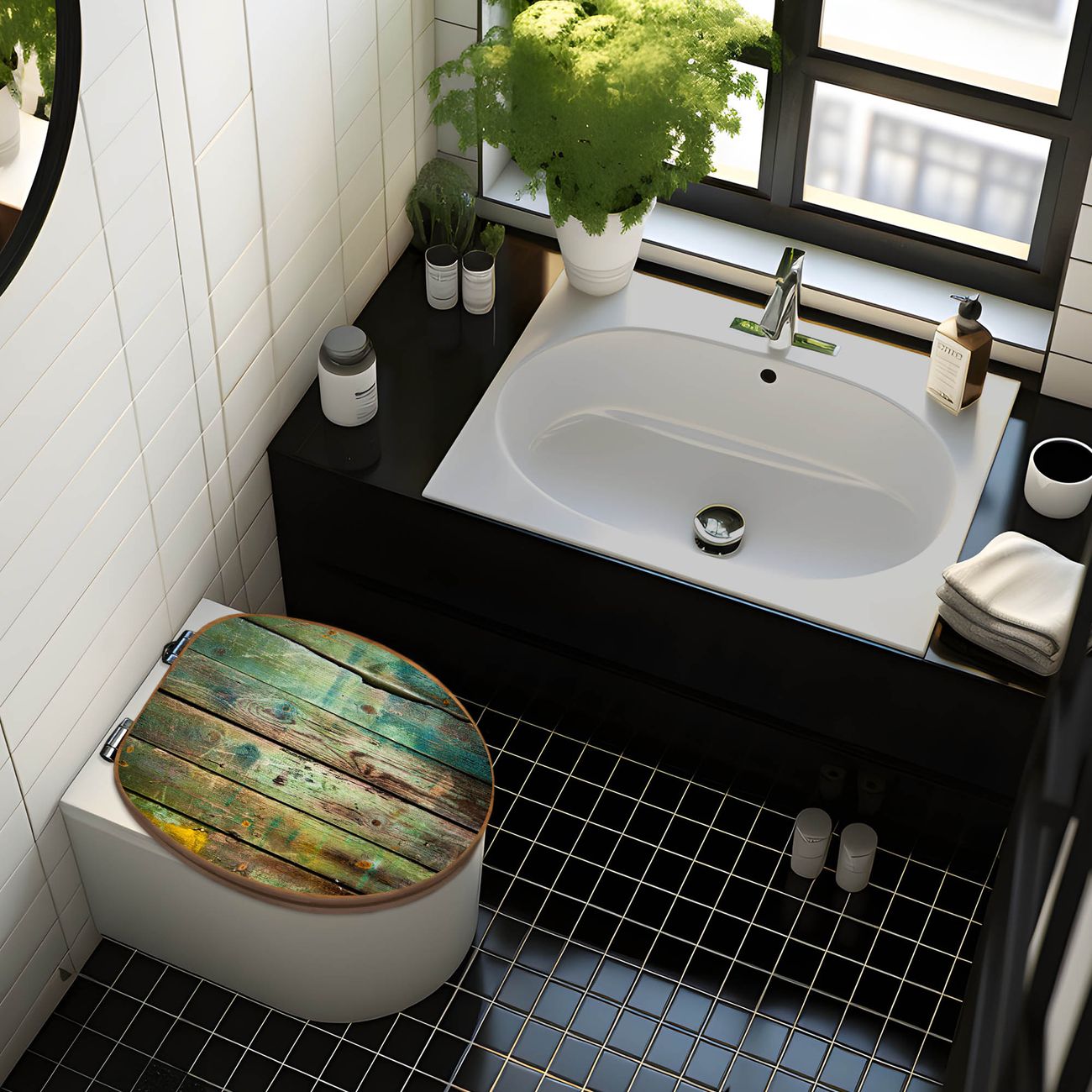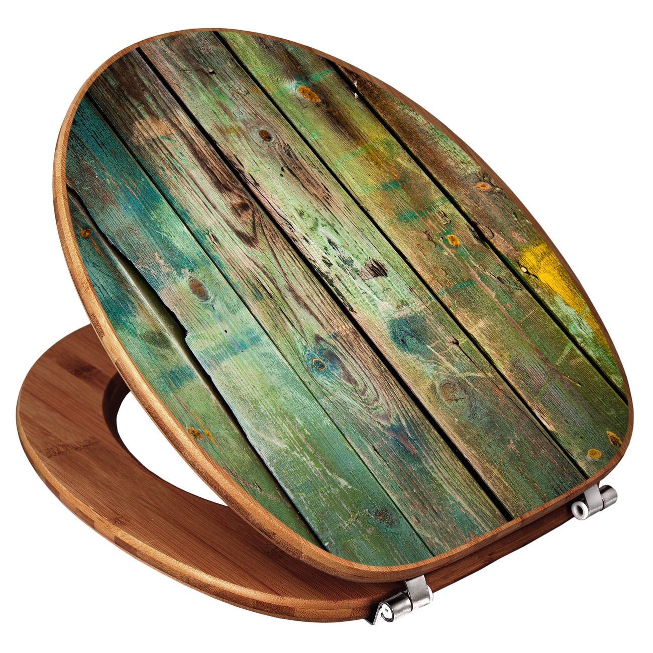 Mit dem banjado Toilettensitz in Bambus verbinden Sie Design und Funktionalität. Sie erhalten den WC-Sitz mit bewährt schwerer Holz Qualität und Universal Scharnieren. Das Motiv Motiv Grünes Holz besteht aus einer schutzlaminierten Motivfolie, die durch das Schutzlaminat zusätzlich vor Kratzern schützt. Durch diesen Motivdruck wird der WC-Sitz zu einem Blickfang in Ihrem Bad.