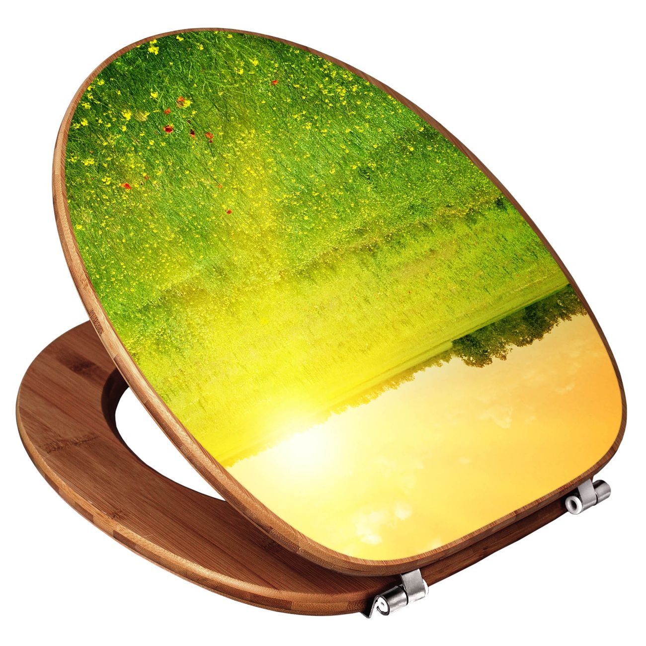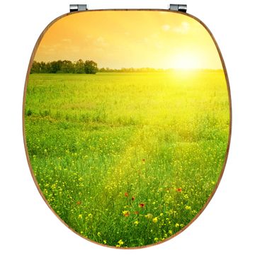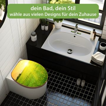 Mit dem banjado Toilettensitz in Bambus verbinden Sie Design und Funktionalität. Sie erhalten den WC-Sitz mit bewährt schwerer Holz Qualität und Universal Scharnieren. Das Motiv Motiv Guten Morgen 2 besteht aus einer schutzlaminierten Motivfolie, die durch das Schutzlaminat zusätzlich vor Kratzern schützt. Durch diesen Motivdruck wird der WC-Sitz zu einem Blickfang in Ihrem Bad.
