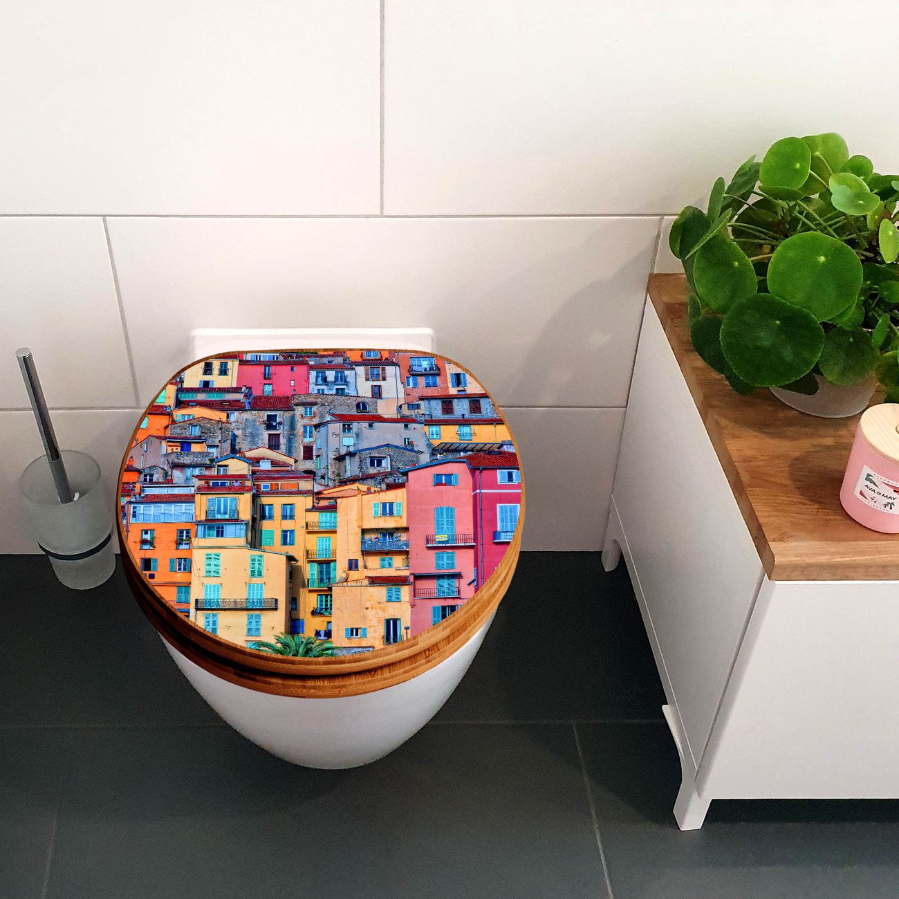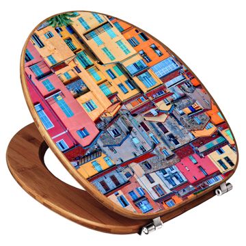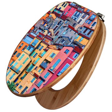 Design WC-Sitz Bambus Holz Motiv Häuserberg